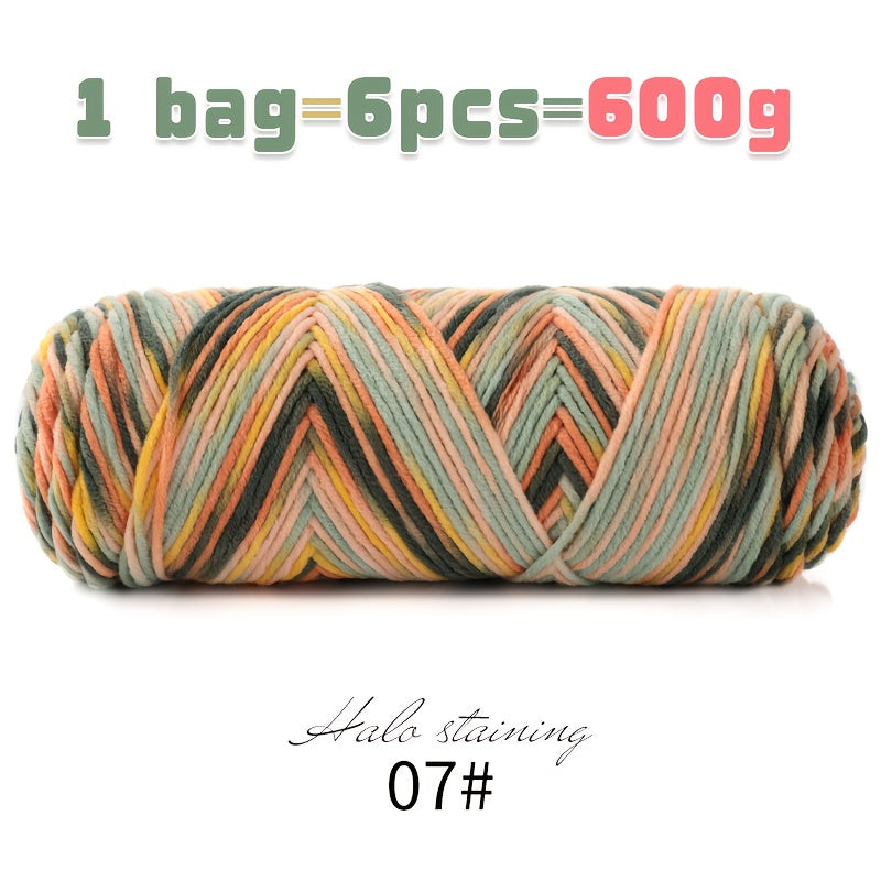 1 Large Bag 600g Soft Ombre Yarn Rainbow Gradient Colorway for Crafting, Casual Hand-Knitting Materials to Make Fashionable Sweaters, Scarves, Hats, Gloves, Storage Baskets