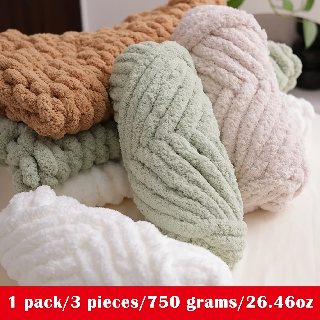 1 Pack/3 Balls/750g Large Roll Heavyweight Extra Thick Cat Tail Knitted Scarf Yarn Polyester Icelandic Yarn for Scarves, Hats, Rugs, Pet Beds, Chenille Yarn, Suitable for Blankets, Children's Blankets, and Soft Mats, Multiple