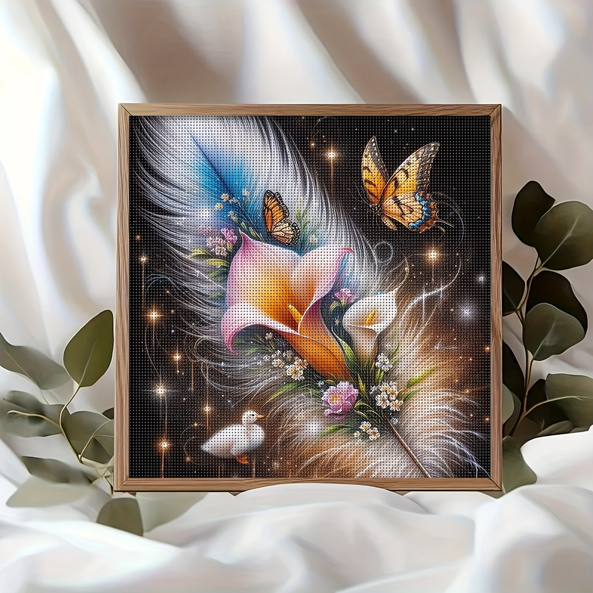 1 Set - Creative Dreamy Feather Theme Cross Stitch Painting Kit, DIY High-Quality Needle and Thread Embroidery Supplies, 11CT Cross Stitch Embroidery Fabric Painting Crafts, Ideal for Home Wall Decoration or Gift Giving, Fram
