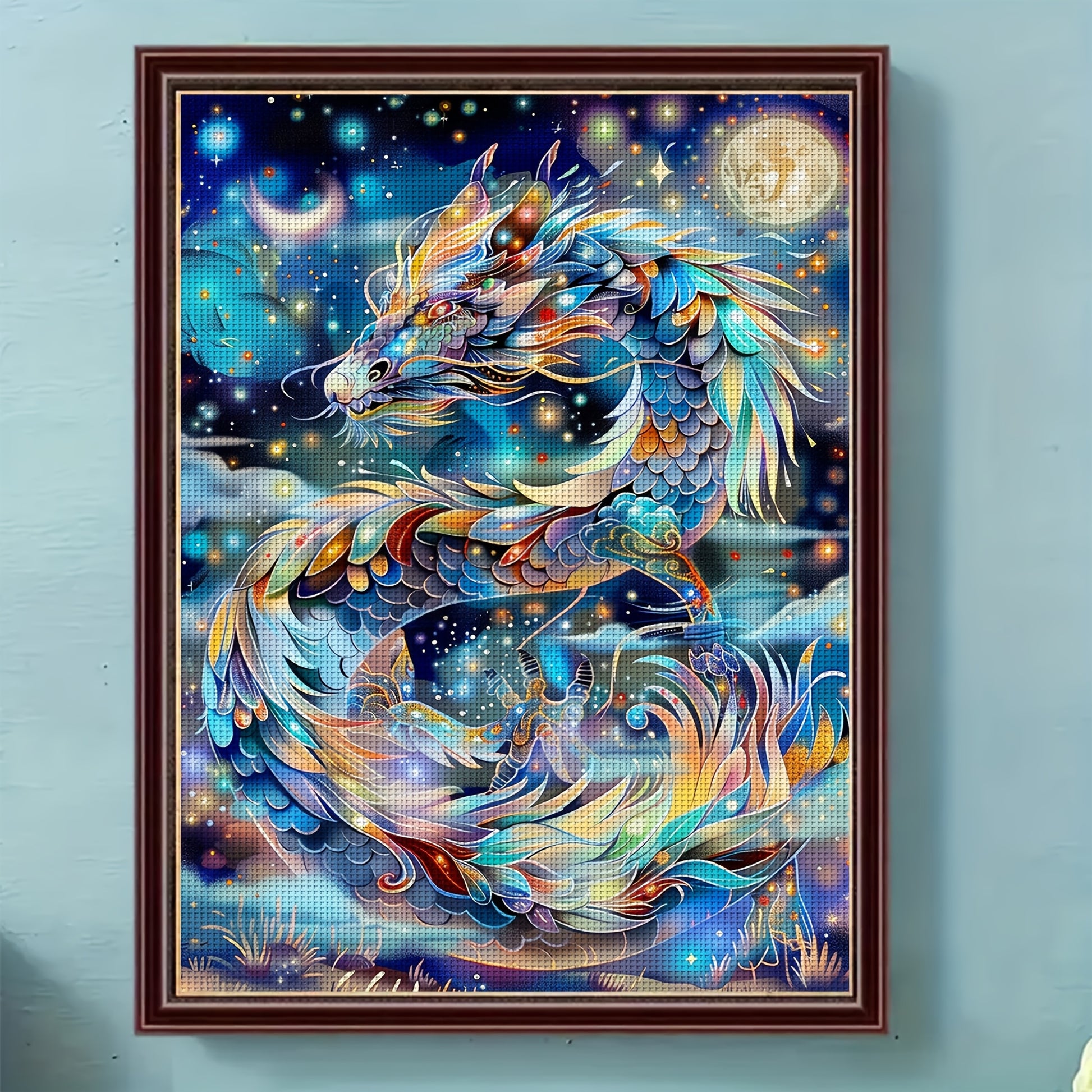 1 Set - Starry Night Dragon Cross Stitch Kit, DIY Colorful Needle and Thread Art, 11CT Cross Stitch Fabric Craft Kit with thread, Needles, and Instructions, Size 14.17×18.11 Inches.