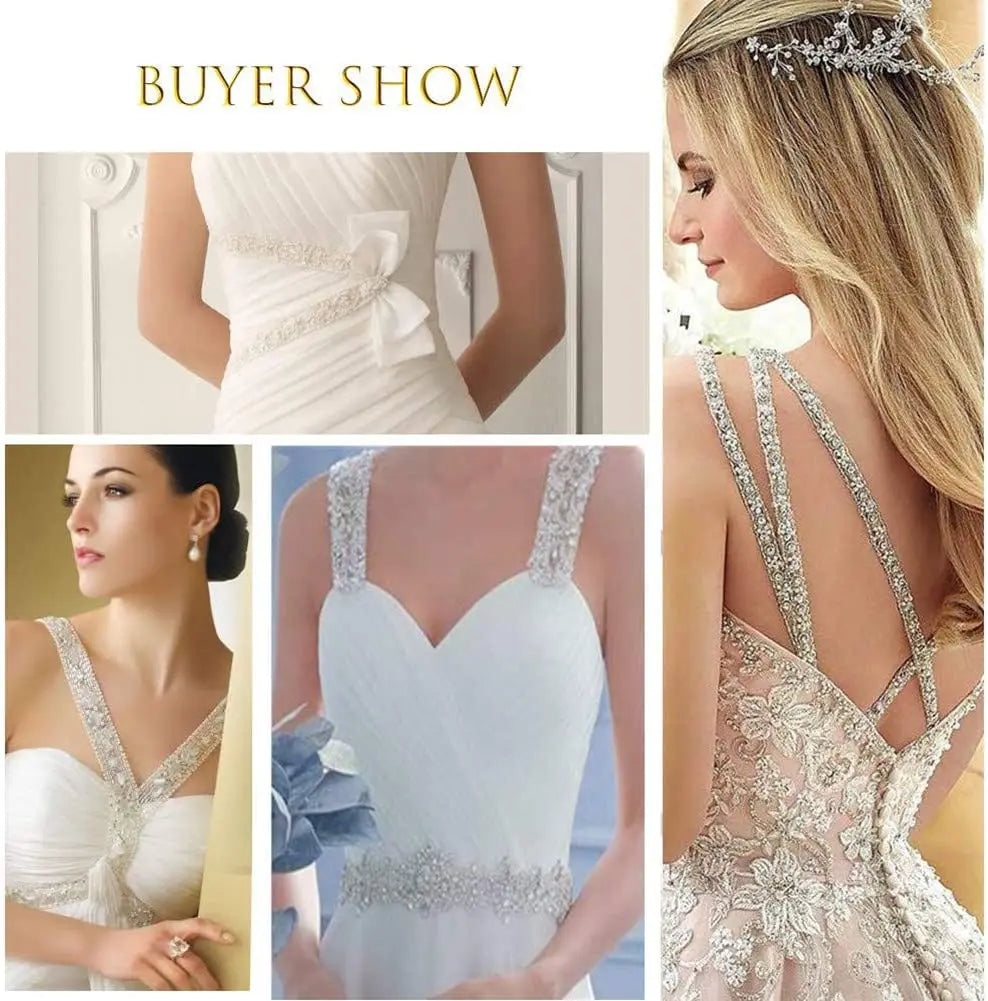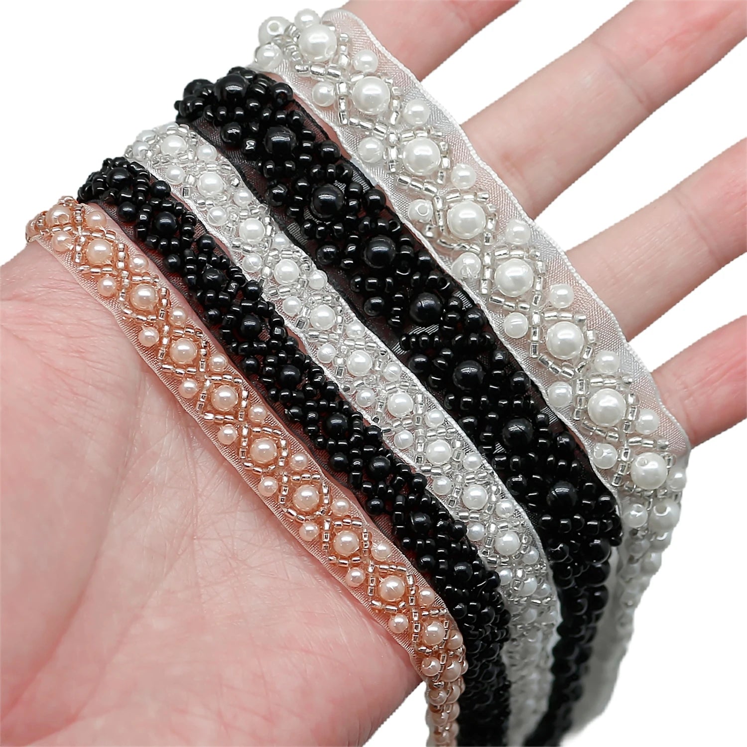 1 Yards Pearl Beaded Trim Bridal Lace Ribbon Crystal Rhinestone Applique Trim straps for Craft Sewing Wedding Dress DIY Fabric