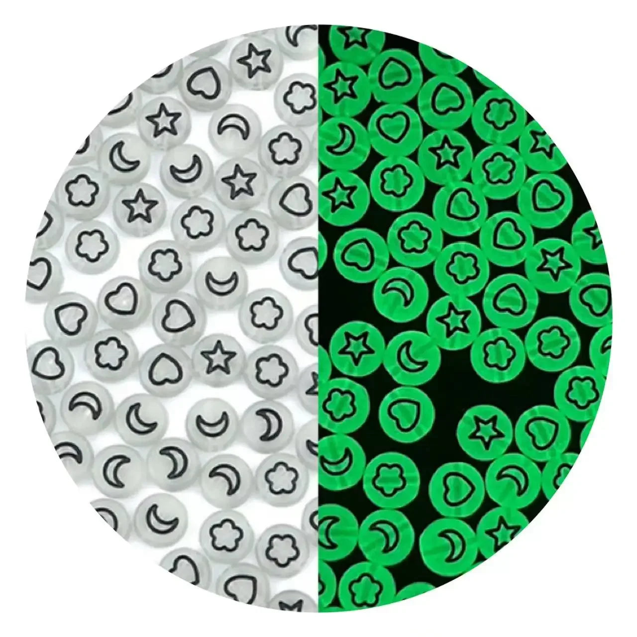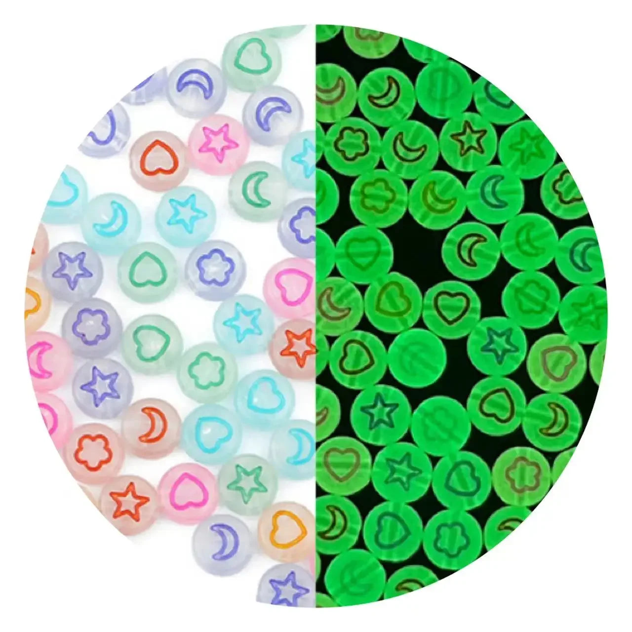 100/200/300/500pcs Acrylic Luminous Beads Round Heart Flower Square Alphabet Beads For Jewelry Making Diy Bracelet Accessorie