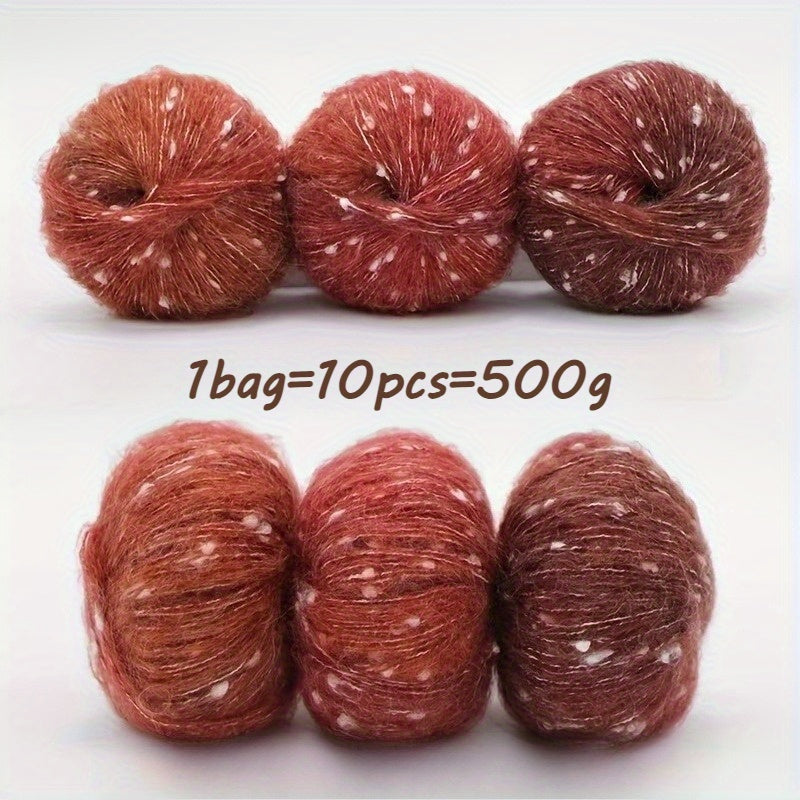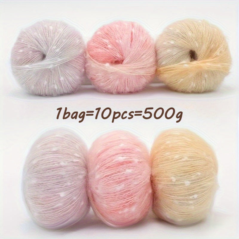 10pcs Starry Sky Gradient Long Staple Cashmere Yarn Rainbow Sugar Bean Color Dot Cashmere Wool Shake Velvet Yarn Handmade Knitting DIY Hollow Sweater, Hat, Scarf, Shawl, 50g/pc Total 500g
