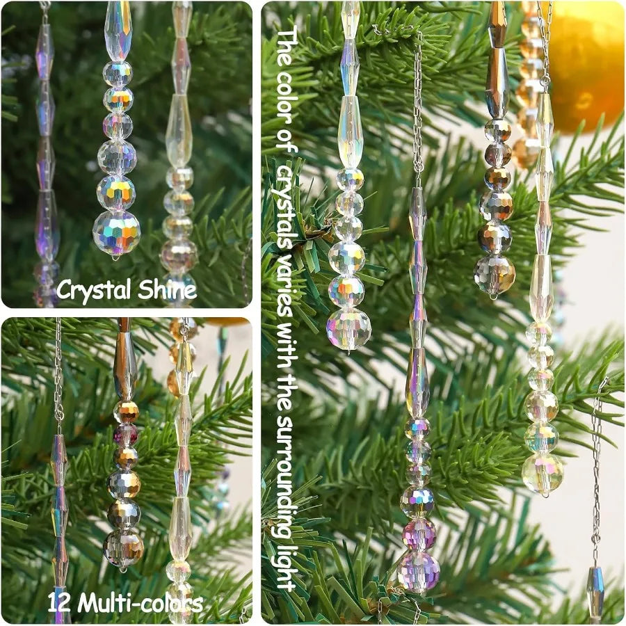 12pcs Crystal Icicle Christmas Tree Ornaments Glass Beads Hanging Chandelier Pendants for Christmas Party Wedding Winter Decora