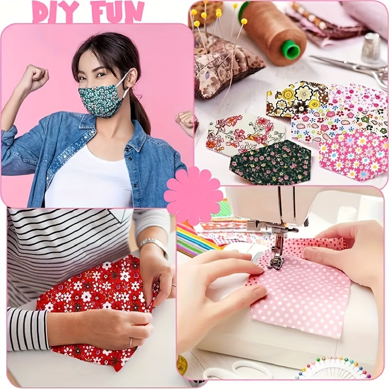 145pcs All- Pre-Cut Square Fabric Set - 9.96x9.96cm (3.9"x3.9") Thin & Lightweight, Vibrant Multicolor Floral Patterns with Polka Dots, Stripes & Gingham Check - Ideal for DIY Sewing, Quilting, Scrapbooking, Handmade Crafts -