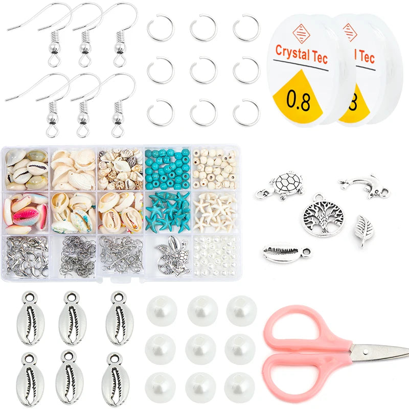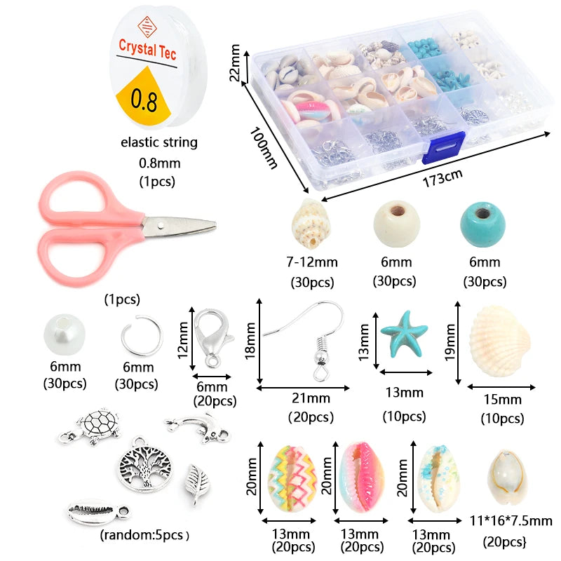 15 Grid Colorful Ocean Shell And Stone Beads Kit Metal Pendant For DIY Craft Jewelry Making Accessories Set