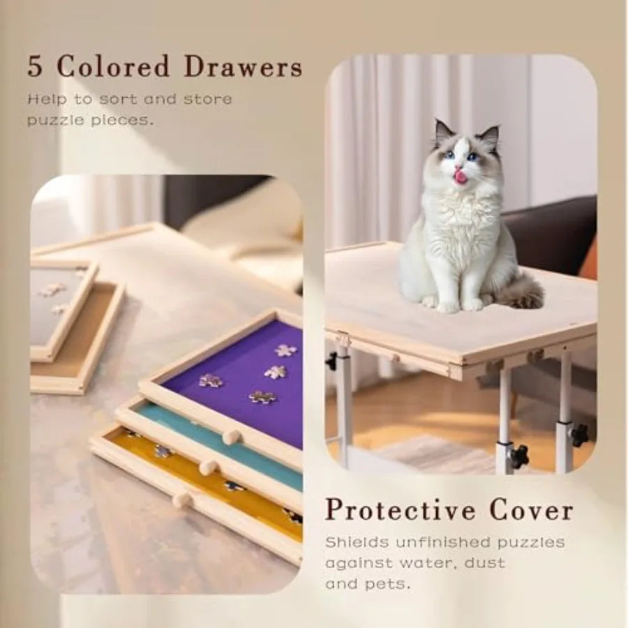 1500 Piece Tilting and Rotating Puzzle Table with 5 Drawers and Cover Angle and Height Adjustable Puzzle Board with Removable C