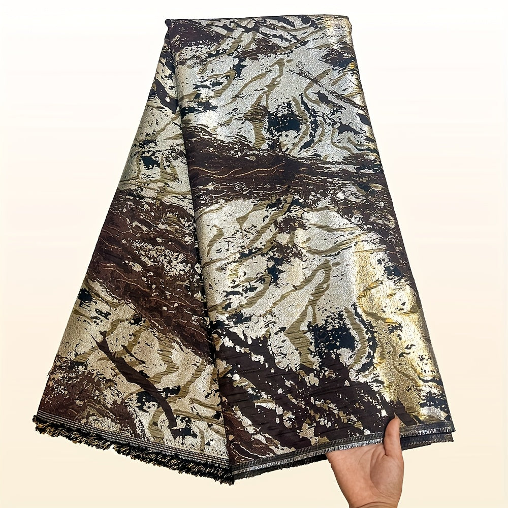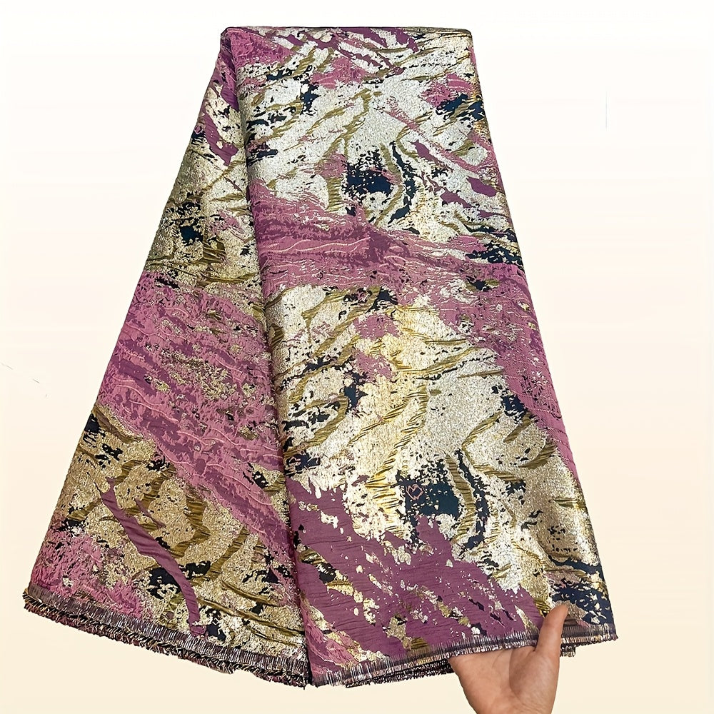 1pc 5-Yard African Jacquard Lace Fabric, Latest Design French Nigerian Gold Plated-Plated Lace for Women's Wedding Dress Sewing