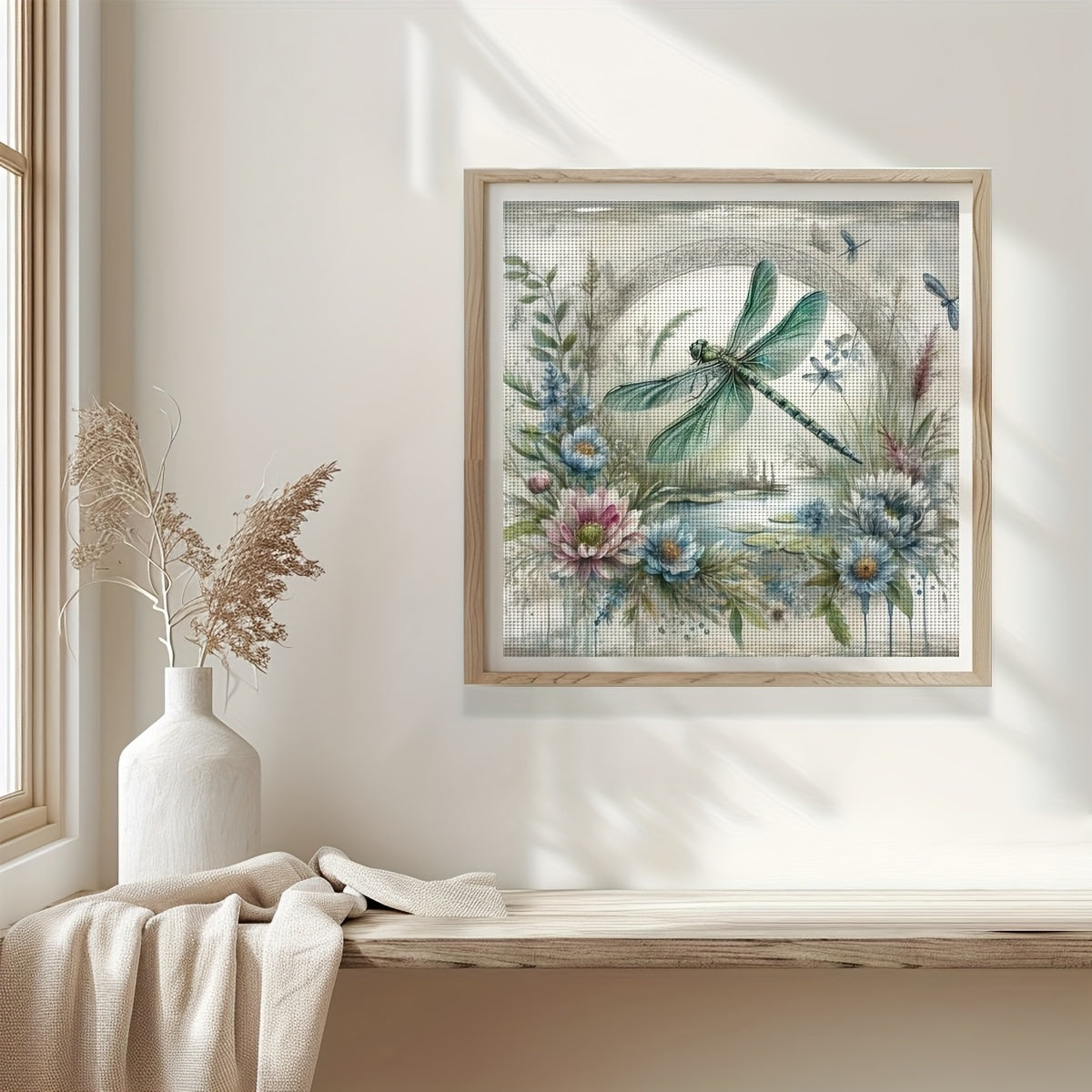 1pc JOZYSH 40x40cm/15.7x15.7" Unframed Dragonfly & Floral Cross Stitch DIY Kit - Easy Beginner Project with Printed Canvas, Needles, Threads, Patterns & Instructions - Perfect for Home & Office Decor, Ideal Gift for Friends &