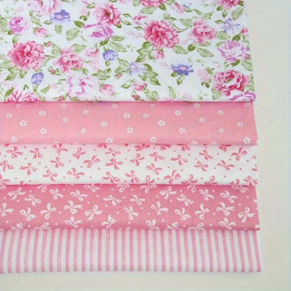 22pcs 10x10'' Pink Cotton Print Fabric Bundles with Green Leaf Flower Stripe - Perfect for DIY Sewing Patterns, Crafts, and Home Decor, Craft Projects|Playful Design|Soft Texture