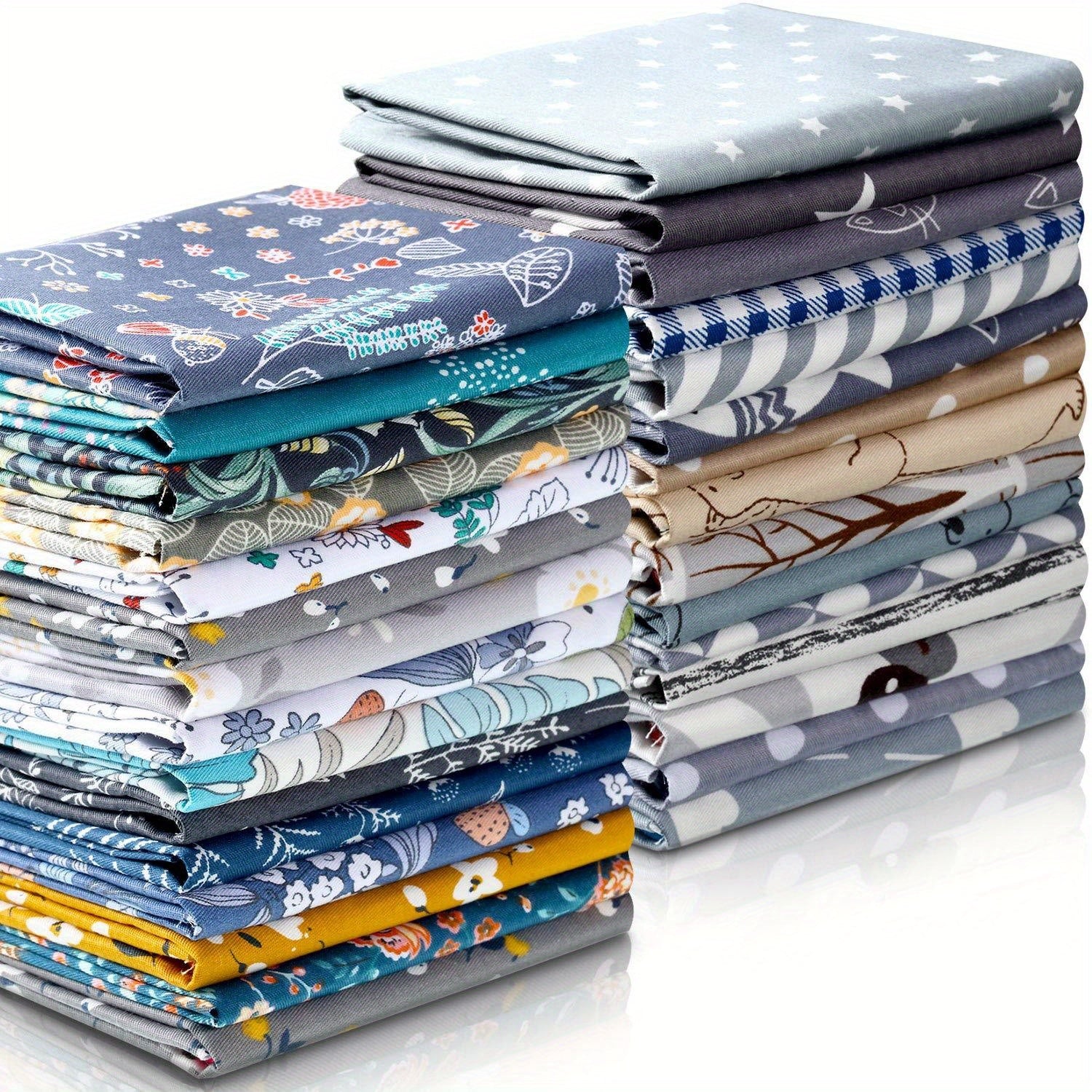 30pcs Floral Fabric Bundle - 10x10 Inch Pre-Cut Squares for Patchwork, Quilting, and DIY Crafts, Assorted Patterns Including Floral, Geometric, and Nature Motifs in Blue, Green, Yellow, Pink, and More, Hand Wash Only