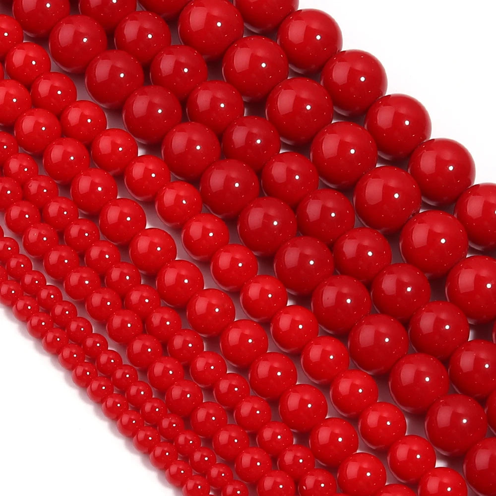 4/6/8/10/12mm Red Coral Jades Stone Beads Round Loose Spacer Beads for Jewelry Making DIY Charms Bracelet Necklace Accessories