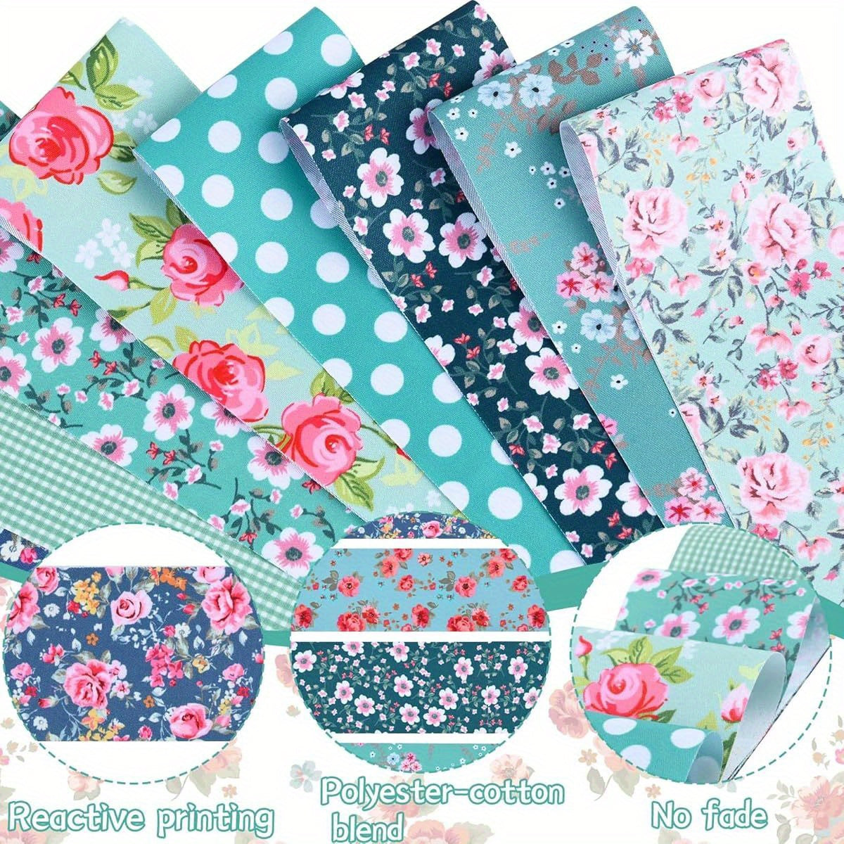40pcs 6.5*50Cm (2.55*19.7In) Blue Floral Series Fabric Fabric Rolls, Long Quilted Patchwork Craft Fabric, DIY Patchwork Craft Materials, Patchwork Kits with Different Patterns, Hobbyist Pre-Cut DIY Handmade Doll Costumes And
