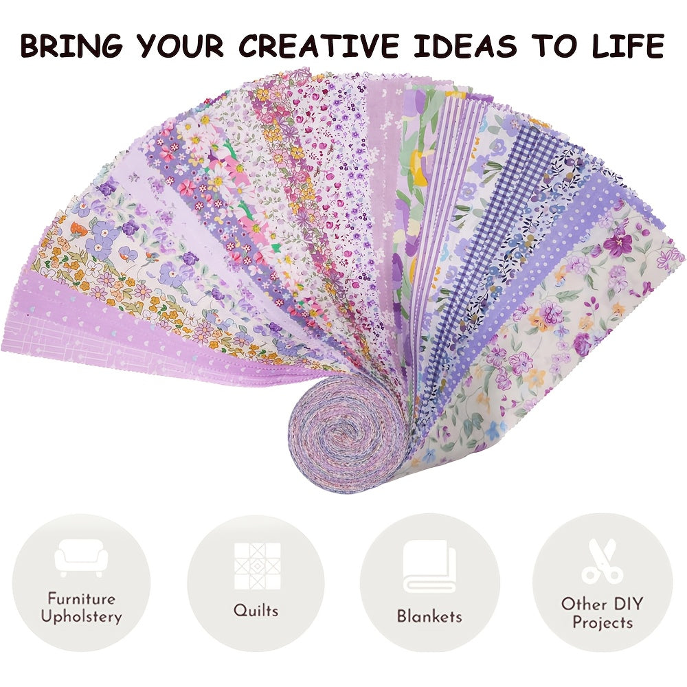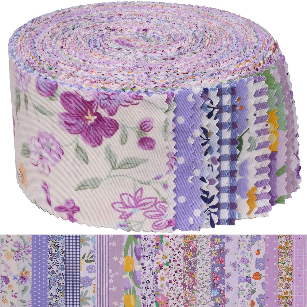 40pcs Purple Garden Jelly Roll Fabric - 2.5" x 20" Wide Pre-Cut Quilt Strips with Assorted Floral & Checkered Patterns for Quilting, Sewing, DIY Crafts, Jelly Roll Fabric for Quilting, Sewing Projects, Vibrant Pattern Variety