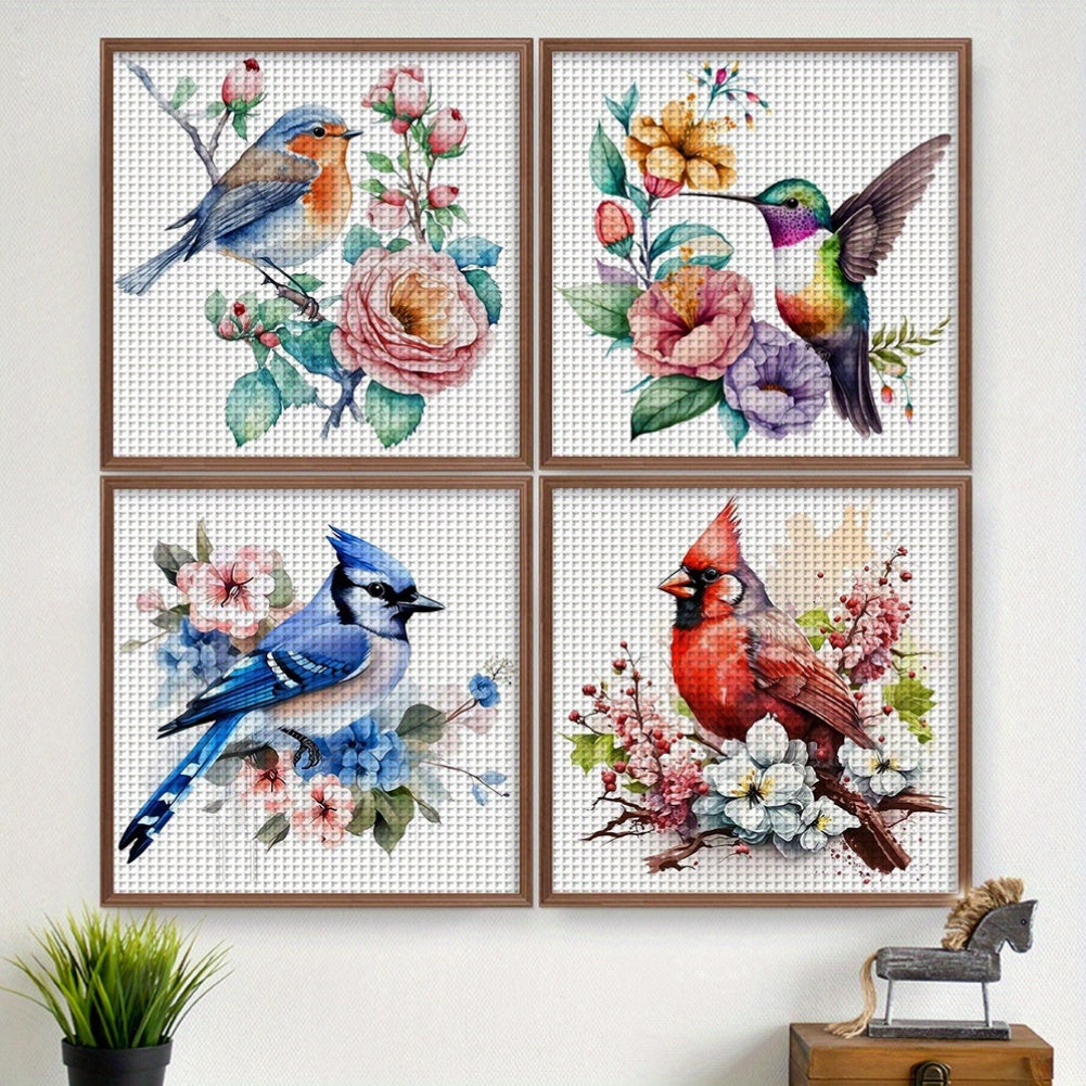 4pcs Floral Bird Cross Stitch Kit - DIY 11CT Printed Animal Series, 7.87x7.87inch, Includes Tools, Threads & Instructions - Perfect Gift for Craft and Art Lovers, All-Season Fabric Craft Kit, Crafting Supplies|Vibrant Cross S