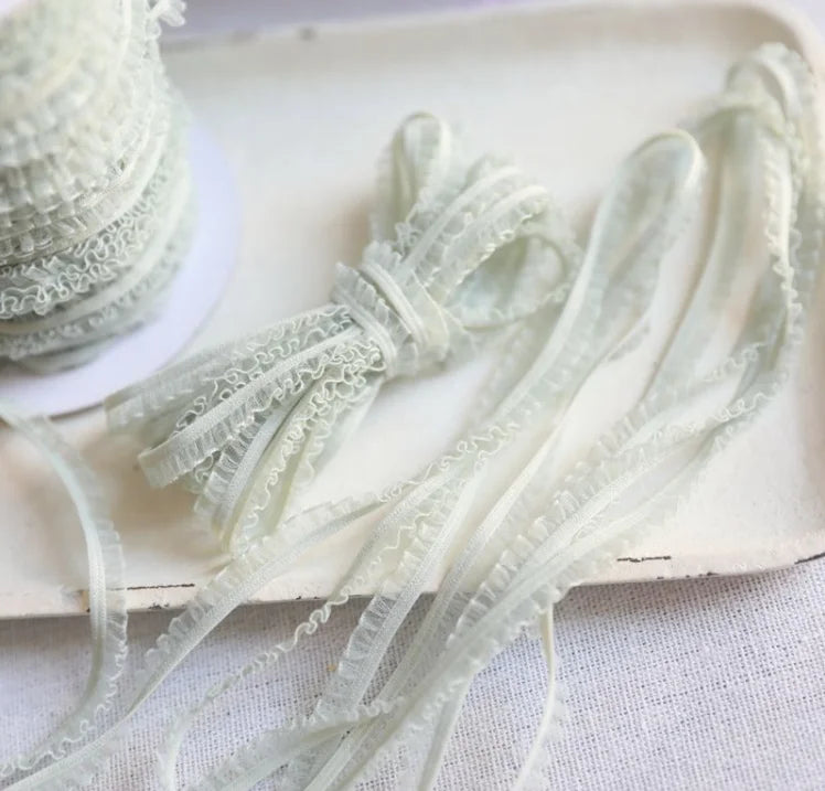 5 Meters/lot Delicate Flower Ruffle Elastic Lace Trims Thin Lace Ribbon DIY Sewing Garments Hometexile Fabric Ornaments 6mm