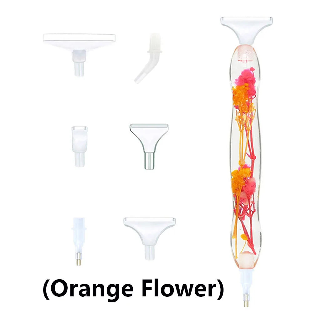 5D Resin Diamond Painting Pen With 6pcs Plastic Replacement Pen Heads Flower Point Drill Pens DIY Art Crafts Diamond Painting