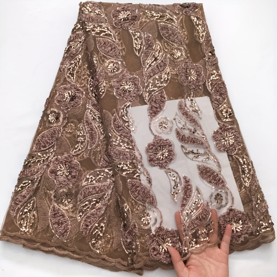 5Yards/pc African Lace Fabric with Sequins, French Mesh Lace Fabric, Nigerian Lace Fabric for Sewing Wedding/Prom/Party Dresses