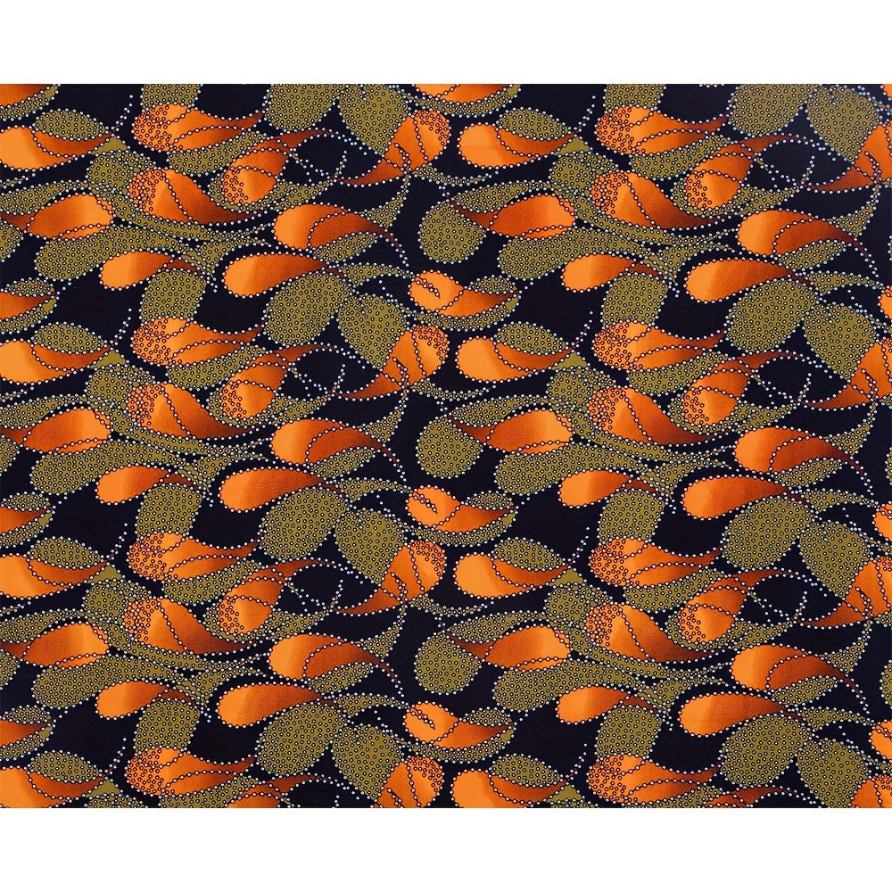 6-Yard African Print Fabric - Double-Sided Wax Print with Vibrant Geometric & Floral Patterns in Orange, Yellow, Black, White, Red, Green, Blue, Purple, Pink, Brown, Beige, Gray, Navy - Machine Washable Polyester for Dresses,