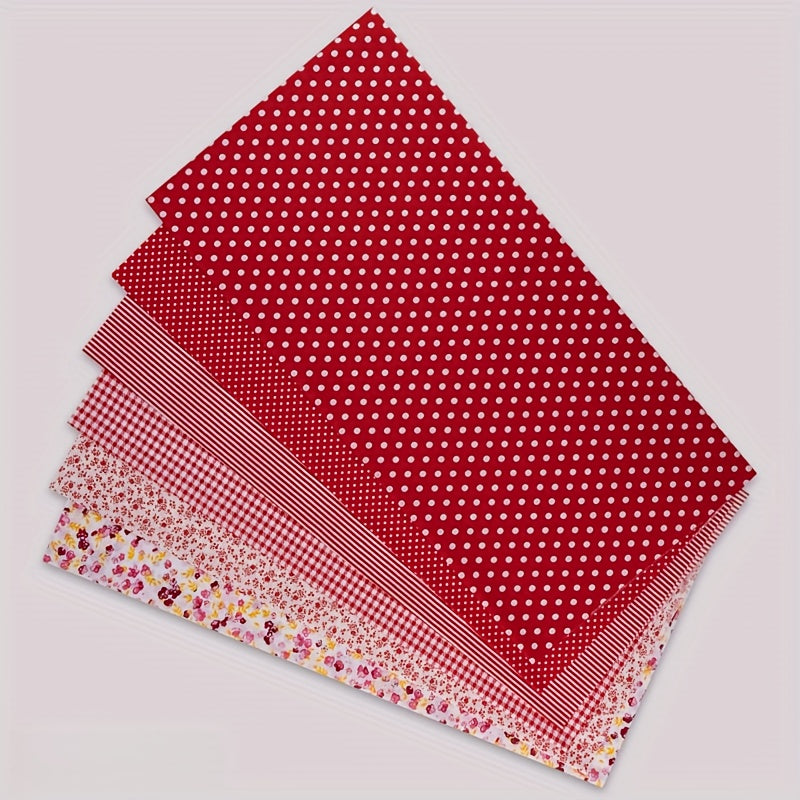 6pcs 19.99''x19.99''(50cm*50cm) Square Shape, Flower, Striped, Polka Dot Cotton Fabric for Sewing, Cotton Flower Polka Dot Bundle DIY Patchwork Quilt Cloth, Craft And Hobby Fabric(Red), Hobby Material, Sewing Fabric, Patchwor