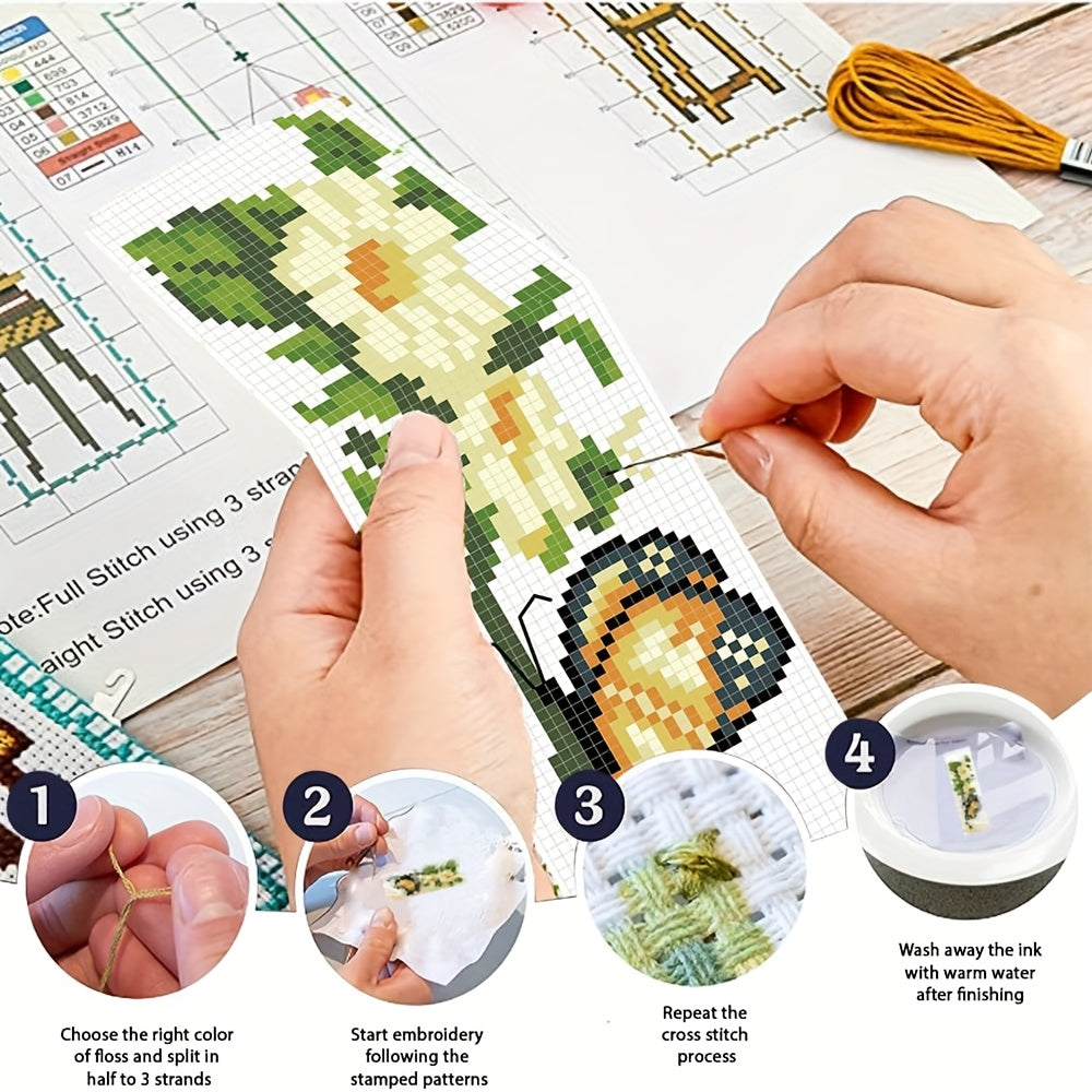 6pcs Butterfly & Flower Cross Stitch Bookmark DIY Art Kit - Includes 6 Printed Cross Stitch Canvases, Sufficient Embroidery Threads, Stitching Tools (Colors Random), and English Instructions - Perfect for Beginners & Craft En