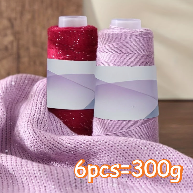 6pcs of Sequined Lace Yarn, Soft And Breathable, Suitable for Knitting And Crocheting Sweaters, Hats, Coats, Available in Various Colors, 10.58 oz.