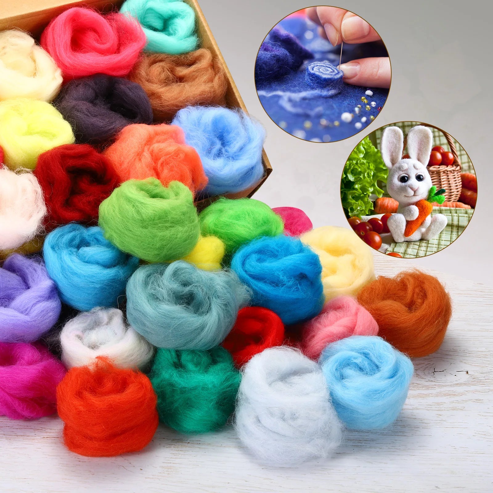 70 Colors 7.4Oz Needle Felting Wool Nature Fibre Wool Yarn Roving Needle Felting Hand for Wool Felting Yarn Supplies DIY Craft