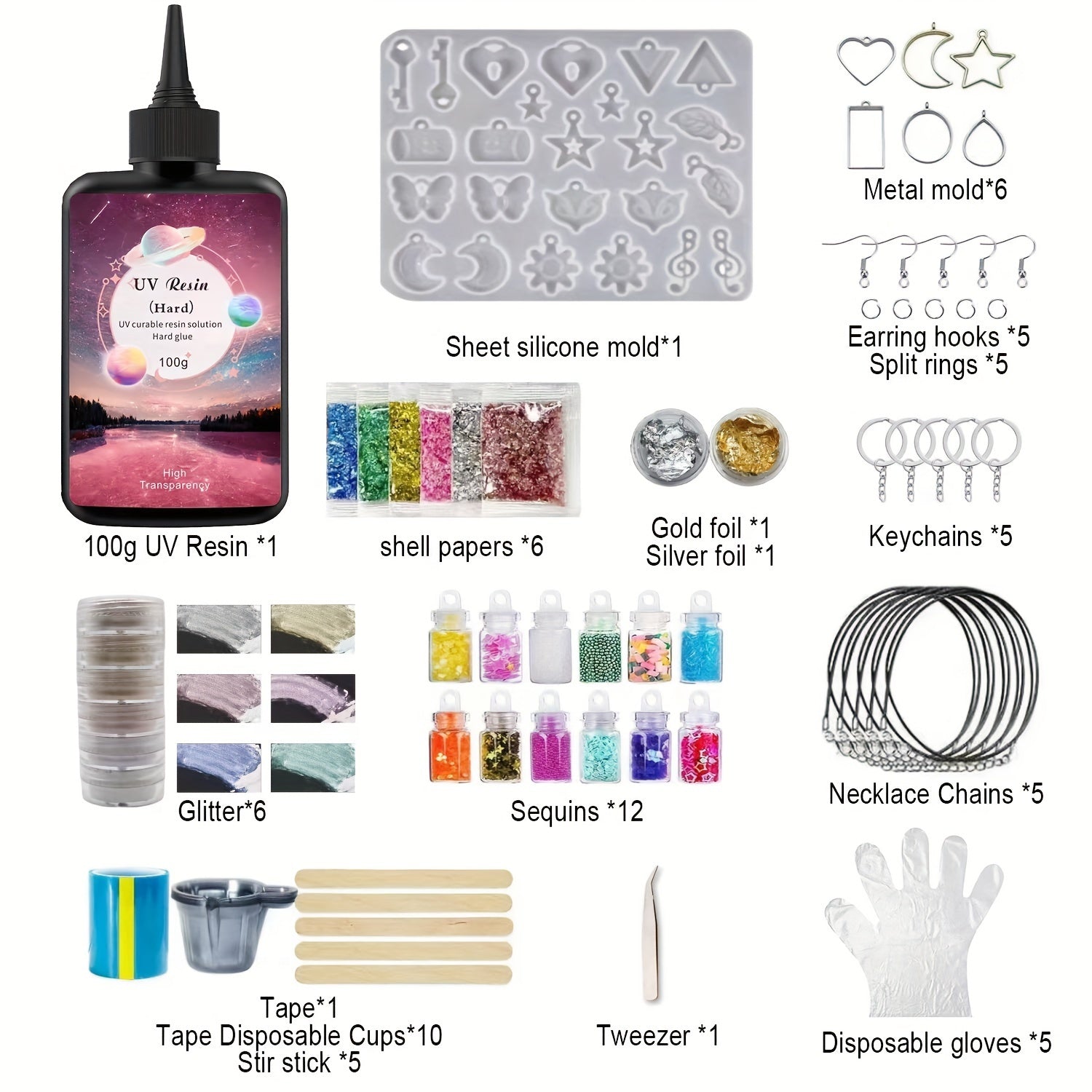 76pcs Complete Resin Jewelry Making Kit with 76-Cut-Ready Accessories (Molds, Charms, Beads, Glitter) & Instructions - DIY Craft Set for Beginners & Experts to Create Necklaces, Bracelets, Keychains, Earrings & Pendants - All