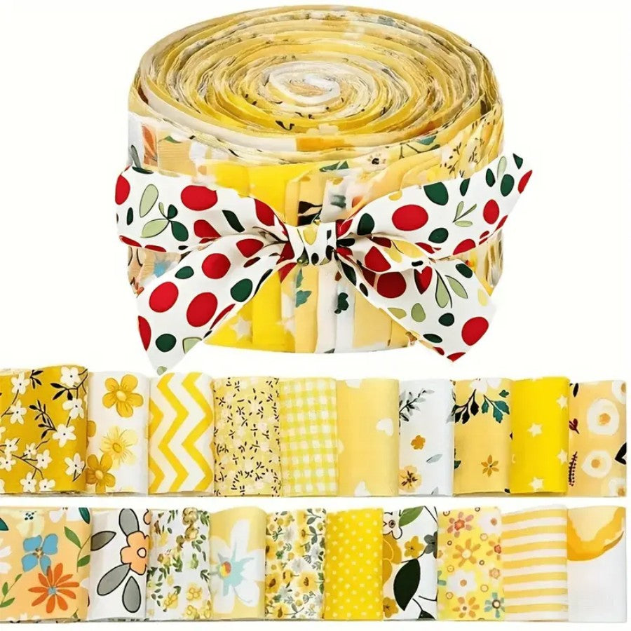 78pcs Pre-Cut Floral Fabric Strips - Yellow Floral pattern with Green Foliage, Precise Pre-Cut strips for Quilting, Sewing, Crafts - Ideal for Quilt Blocks, Covers, Home Decor - Fabric for Beginners & Experts