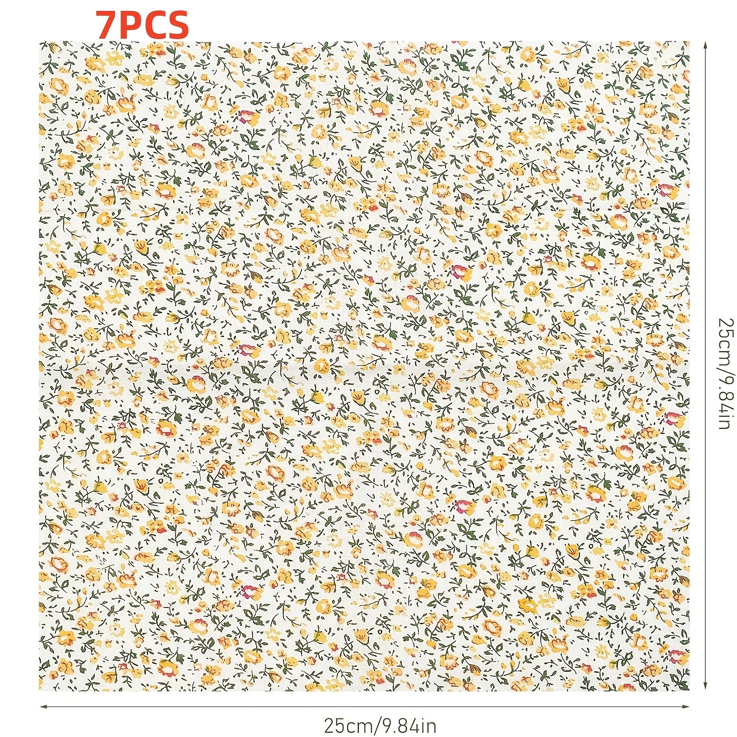 7pcs 9.84inch X 9.84inch Fabric Quilting Floral Patchwork Yellow Fabric Square Bundles Fabric for Sewing DIY Crafts Handmade Bags Clothing, Various Patterns