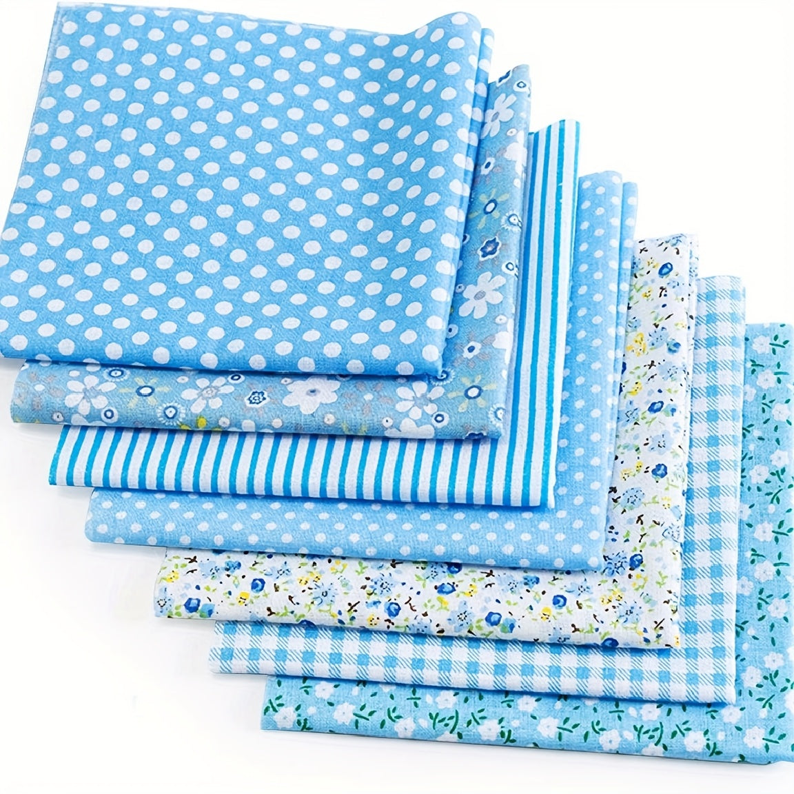 7pcs Blue Floral Cotton Squares 19.69"X19.69"/9.84X9.84Inch Fat Quarters - Pre-Cut Craft Fabric Bundles with Assorted Vibrant Floral Patterns, Machine Washable for Patchwork, Quilting, DIY Sewing Projects, Quilting Fabric, Qu