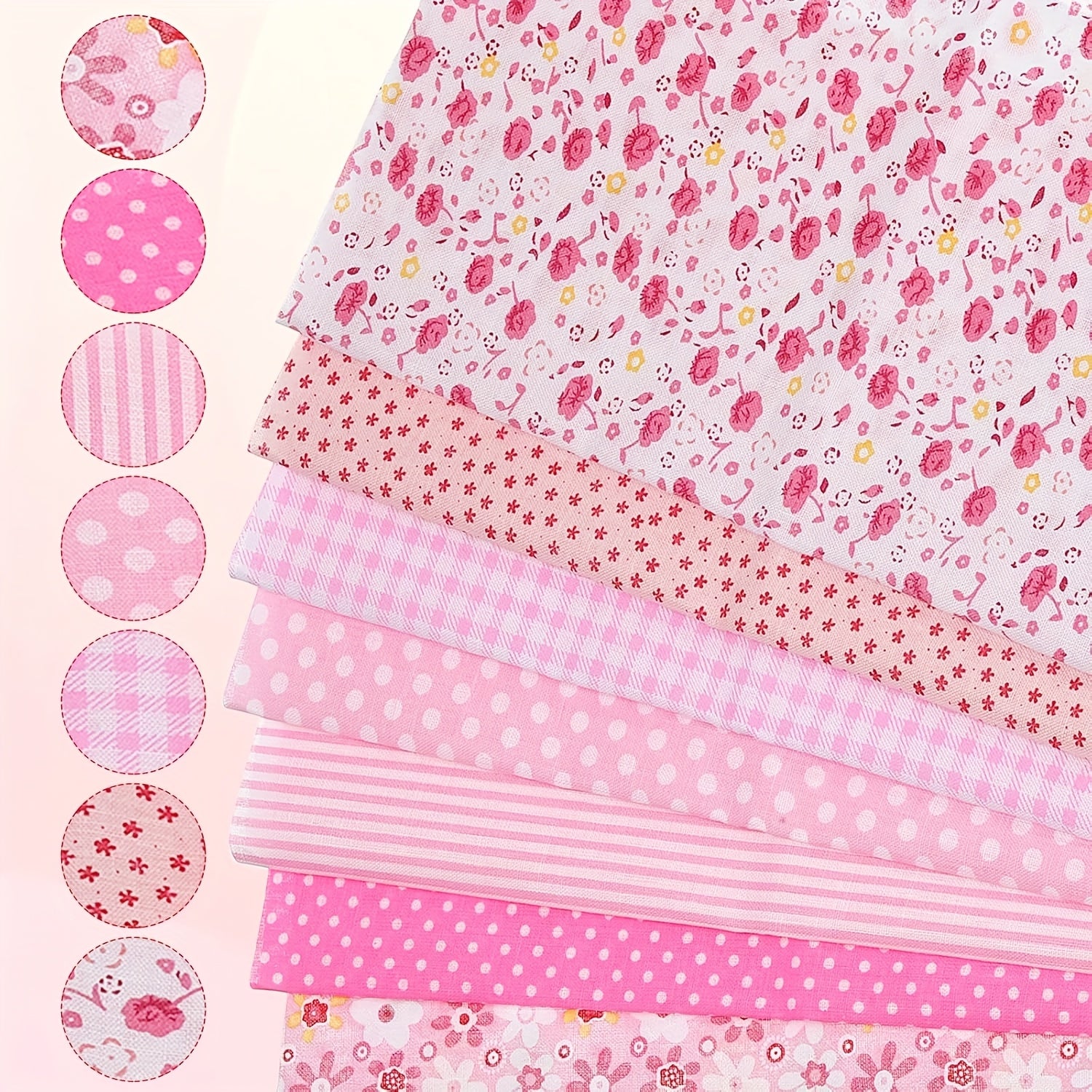 7pcs Pink Floral Cotton Squares 20"x20" Fat Quarters - Pre-Cut Craft Fabric Bundles with Assorted Vibrant Floral Patterns, Machine Washable for Patchwork, Quilting, DIY Sewing Projects, Quilting Fabric, Quilting Materials,Che