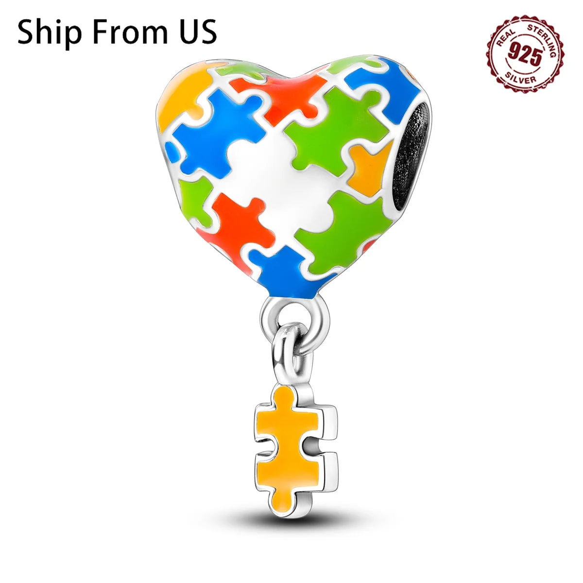 925 Sterling Silver Colorful patchwork heart shape Beads Fit Bracelets Necklace Women Gift DIY Jewelry Making Accessory