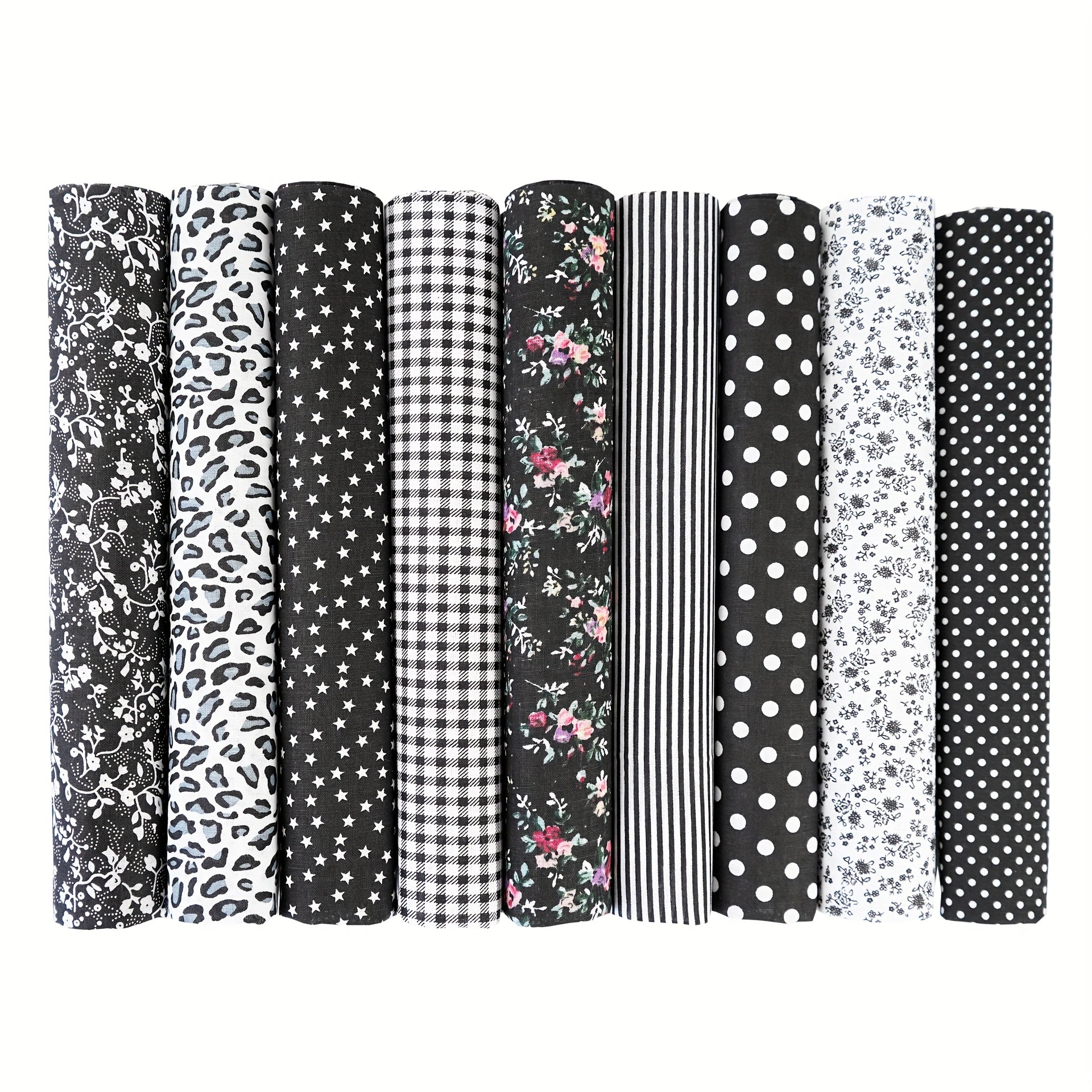 9pcs W&F 100% Cotton Fat Quarter Fabric Bundles - Black Floral & Polka Dot Assorted Patterns, Pre-Cut for DIY Crafts, Sewing Projects, Quilting - Hand Wash Only, Classic Design, Easy Crafting Material, Fabric for Quilting, Cr