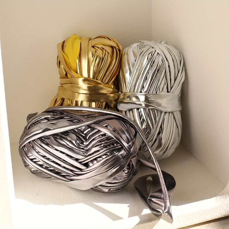 A Set of 3 Mixed Color 300G Faux Metallic Sheen Yarn, Suitable for Handmade Crochet Bags, Dolls, Pendants, Etc., in Golden + Silver + Dark Gray, Antique Golden + Burgundy + Dark Brown, Made of 100% Polyester, Red And White Ch