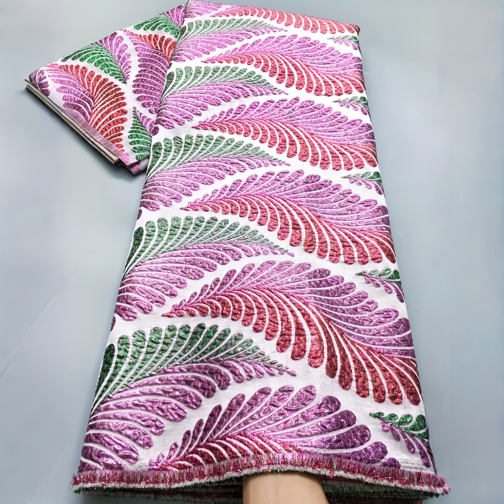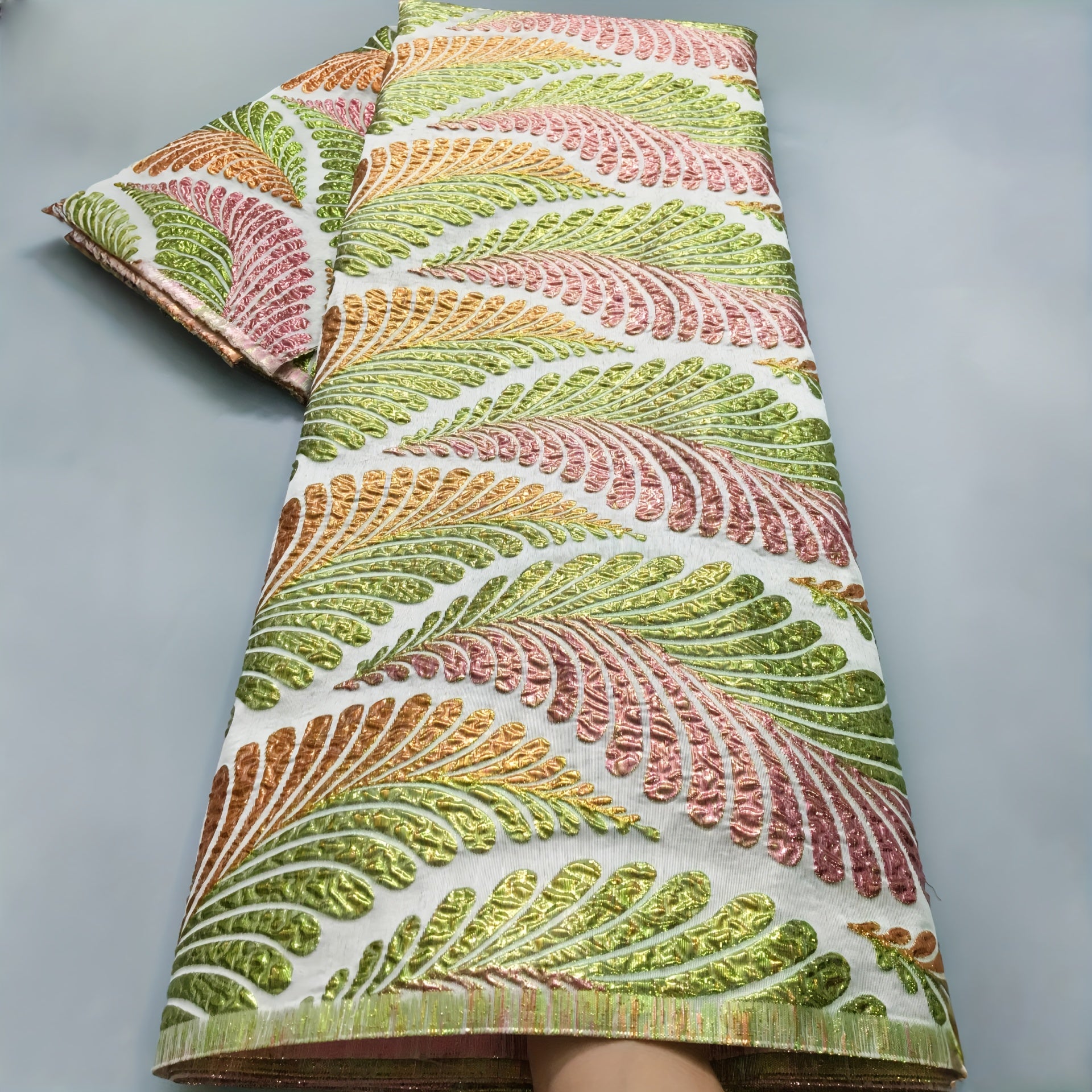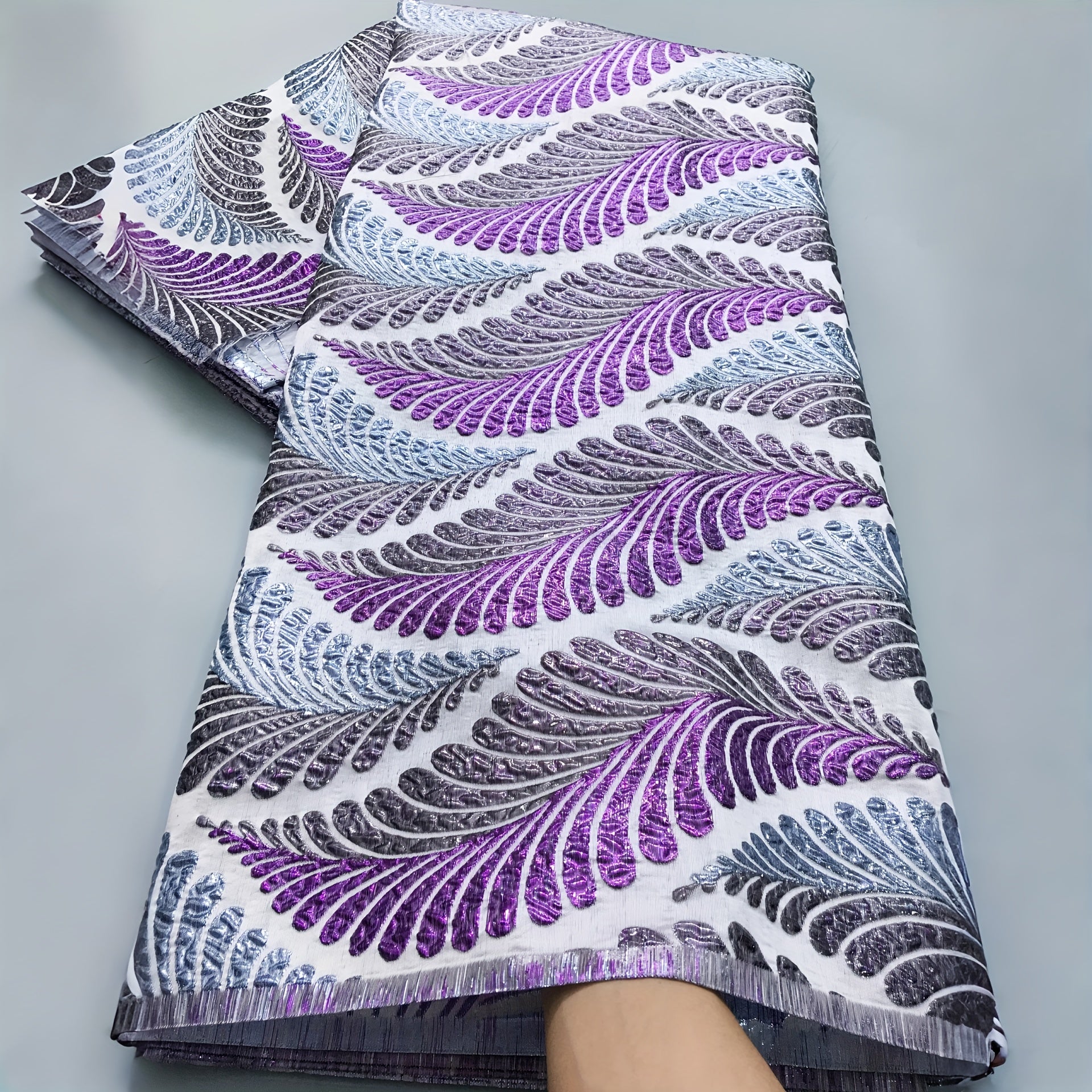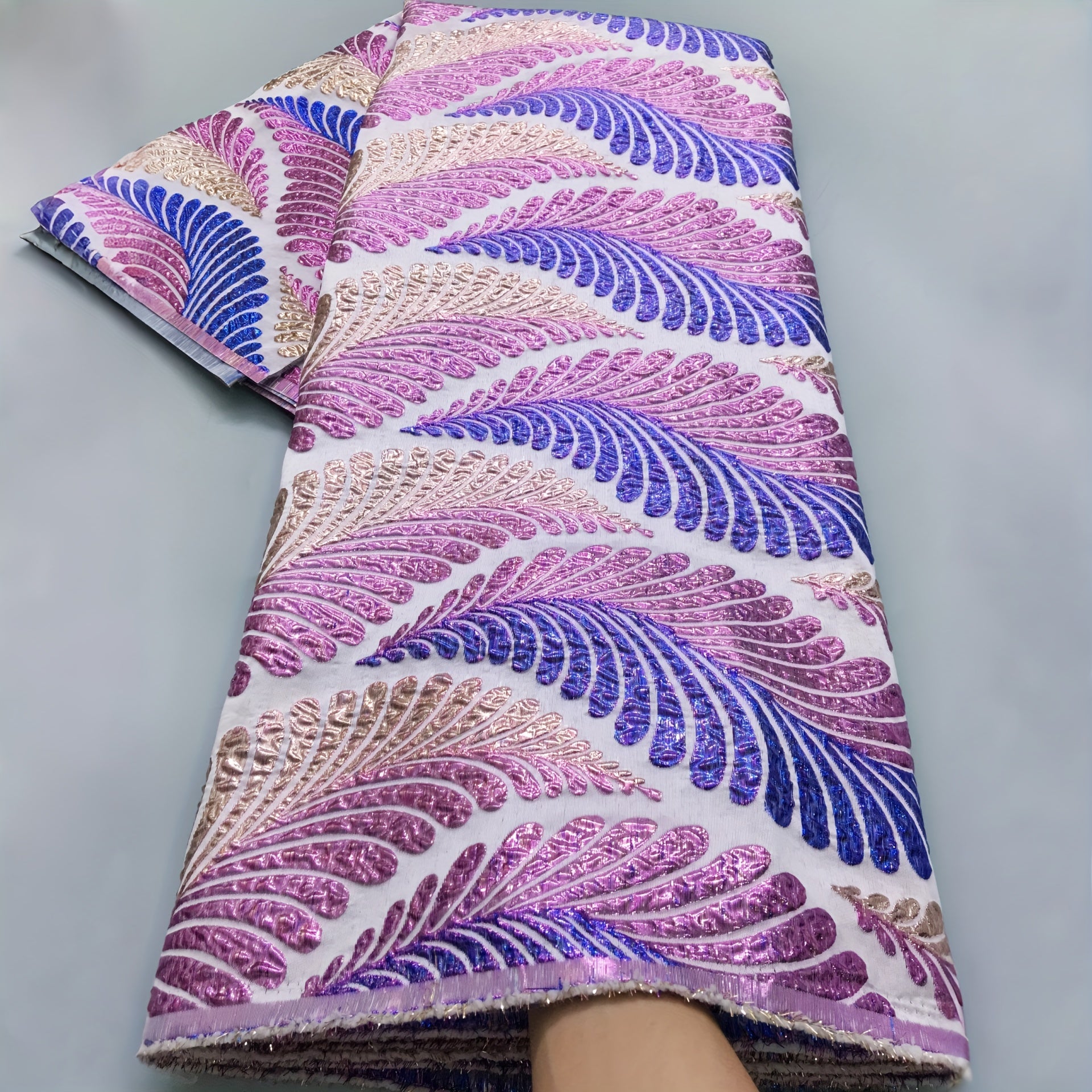 African Nigerian Gild Brocade Lace Fabric - 5 Yards Wide (51-52") Luxury Hand- Fabric with Blue/White/Golden/Black/Teal/Beige/Gray/White Patterns - Pre-Cut for Wedding, Party, Daily African Clothing - Hand Wash Only, Width Av