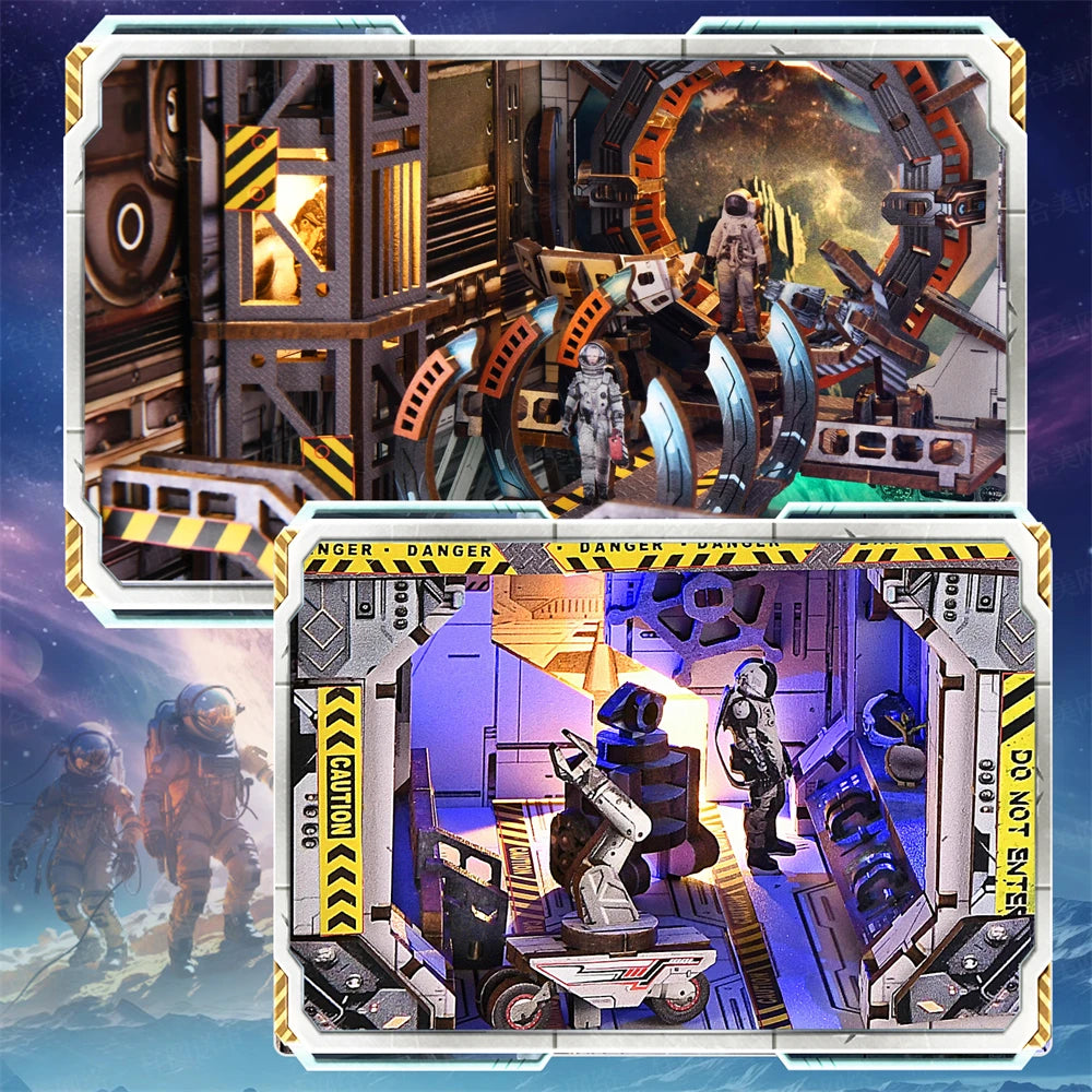 Book Nook Kit Apollo Bricks Space Exploration Model Build 3D Wooden Puzzle DIY Bookshelf Miniatural Astrona Dollhouse Decoration