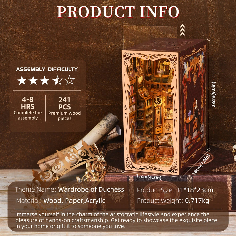 Book Nook Kit The Duchess Wardrobe High Quality Wooden Puzzle Doll House Miniature DIY Assembly Model Kit Production Toys Gifts