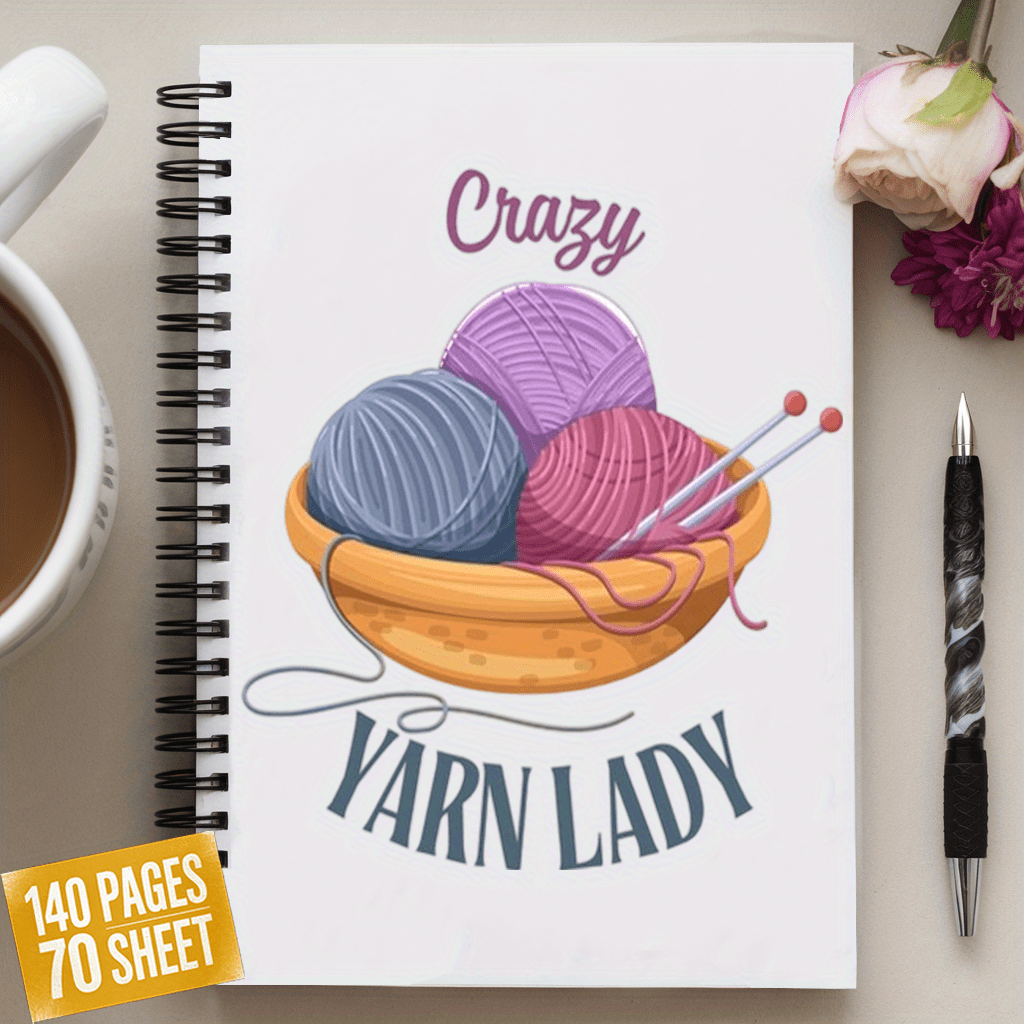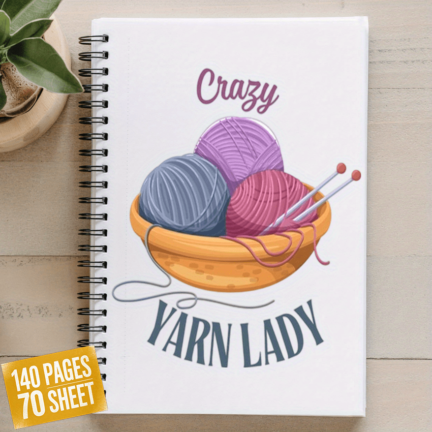 Crazy Yarn Lady's Knitting Journal & Planner - Spiral Bound Crafting Notebook with Yarn Ball & Needles Design, Knitting Patterns, Yarn Ball Tracker, Stitch Count Log, Gift for Knitters, Crochet & Fiber Arts Enthusiasts - Colo