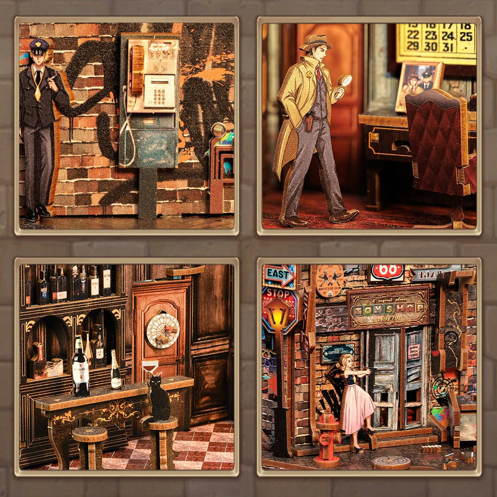 CUTEBEE 3D Bookends DIY Dollhouse Wooden Bookshelf Insert Book Nook Decoration 3D Puzzle Toy for Gifts Farewell to the Night