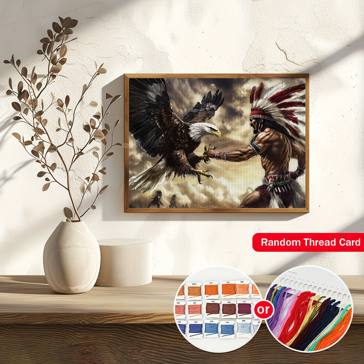 DIY 11x14 Inch Cross Stitch Kit - Majestic Eagle in Flight, 11CT/14CT Frameless Embroidery Pattern with Native American Warrior, Ideal for Home Decor, Living Room, Bedroom, or Gift, Native American Artwork | Natureinspired Ar