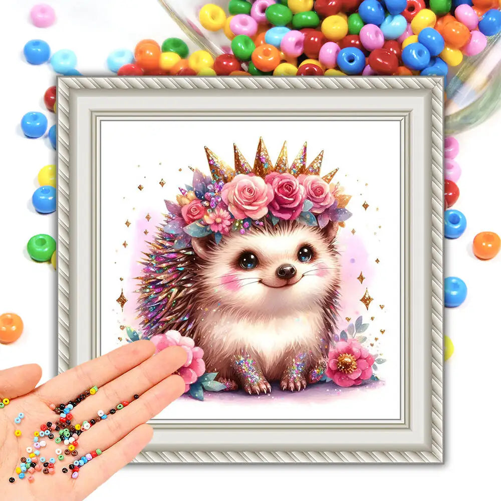 DIY Beaded Cross Stitch Set Hedgehog Animal Beads Embroidery Kit Flower 11CT Printed Canvas Sewing Crafts Home Decoration Gift