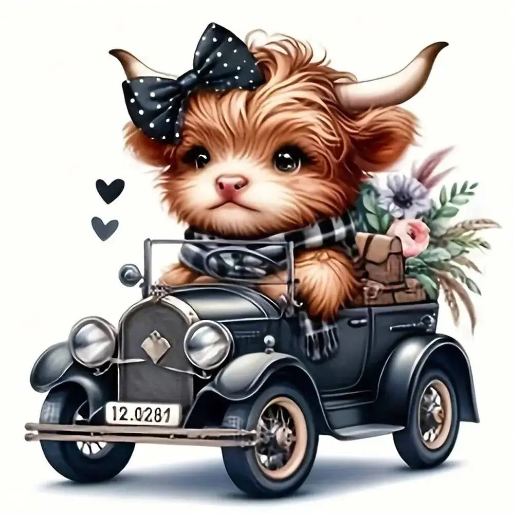 DIY Beads Embroidery Sets Cattle Car 11CT Cross Stitch Kit Cartoon Animal Pattern Artwork Sewing Supplies Home Decoration Gift
