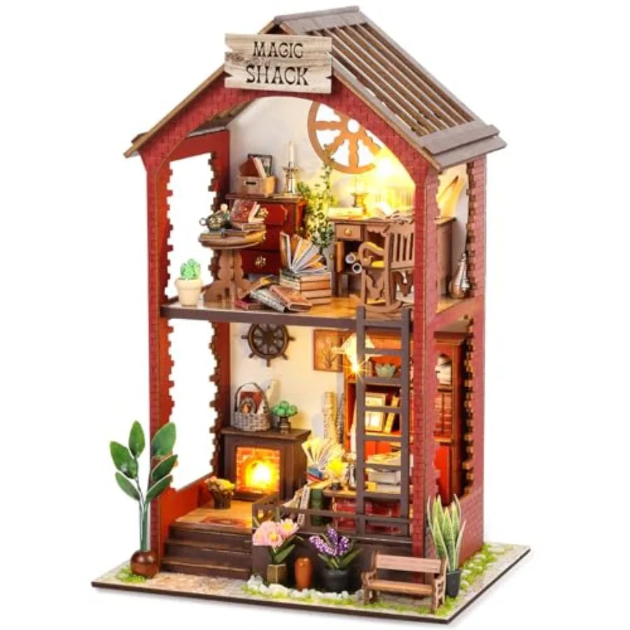 DIY Book Nook Kits for Adults: 3D Wooden Puzzle Bookend Bookshelf Decor with LED Light Miniature House Dollhouse Craft Kit for