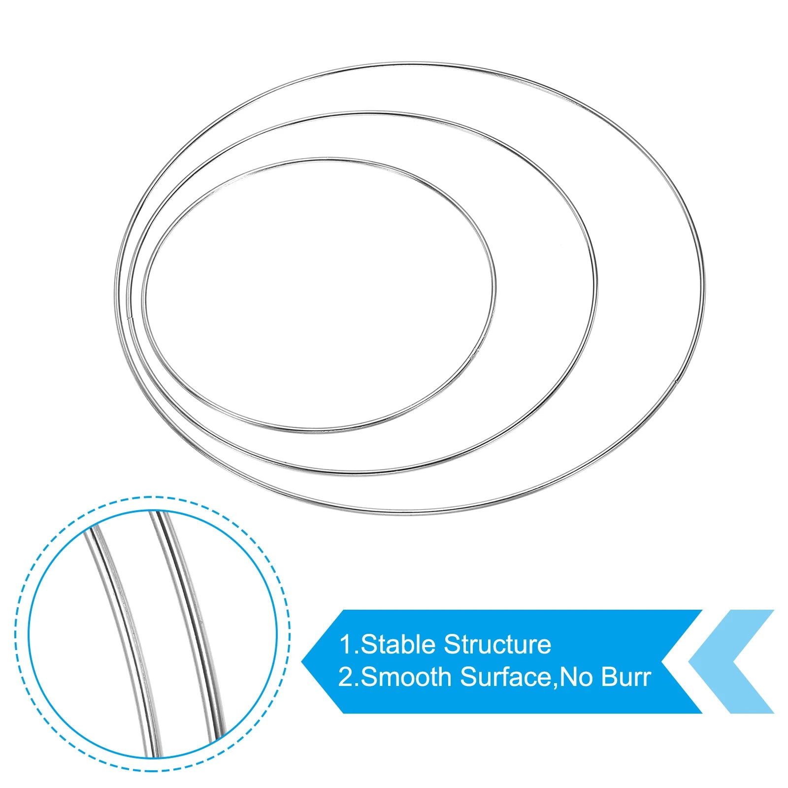 Dream Catcher Rings Set 3 Sizes Metal Macrame Wreath Floral Round Ring Hoop for Home Car DIY Craft Wall Decoration Silver