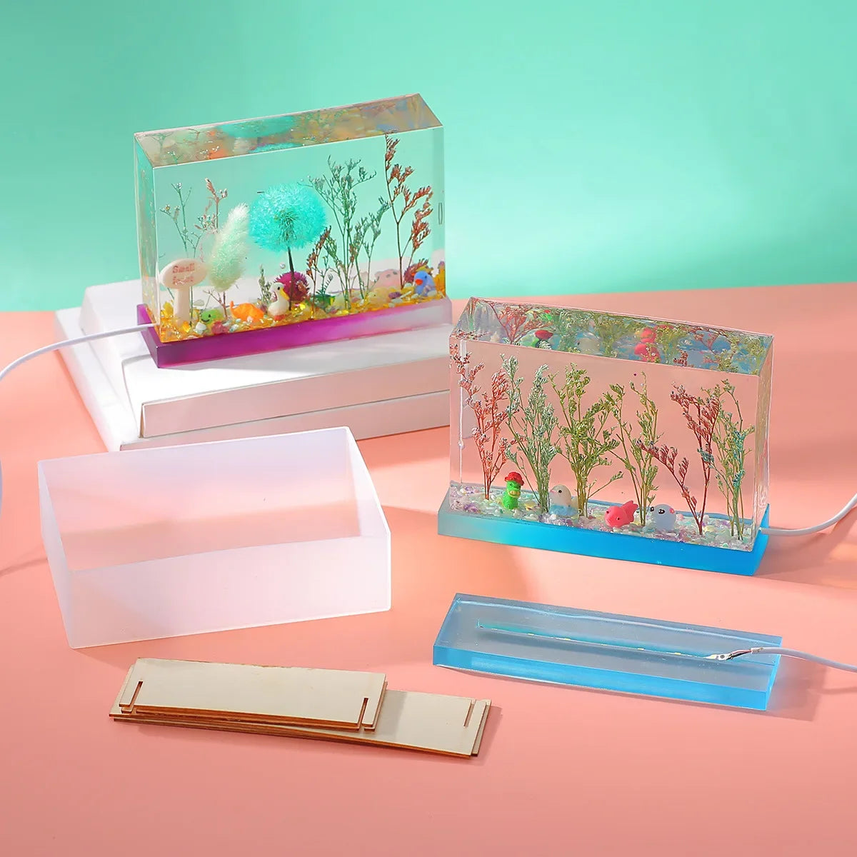 Dry Flower 3D Cube Ornament Square LED Lamp Holder Cuboid Silicone Abrasive DIY Crystal Epoxy Resin Mold Handicrafts
