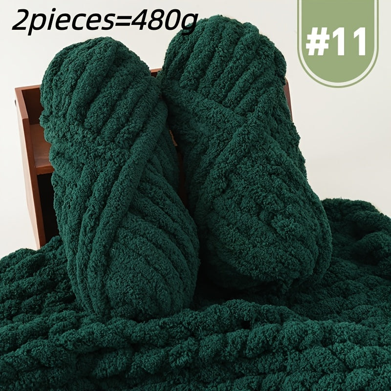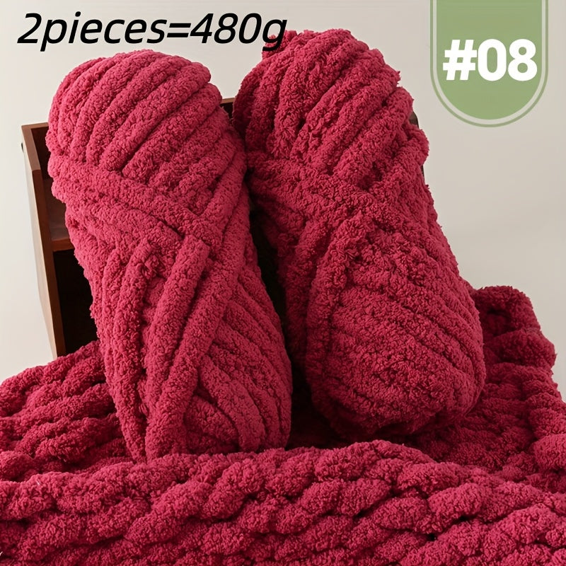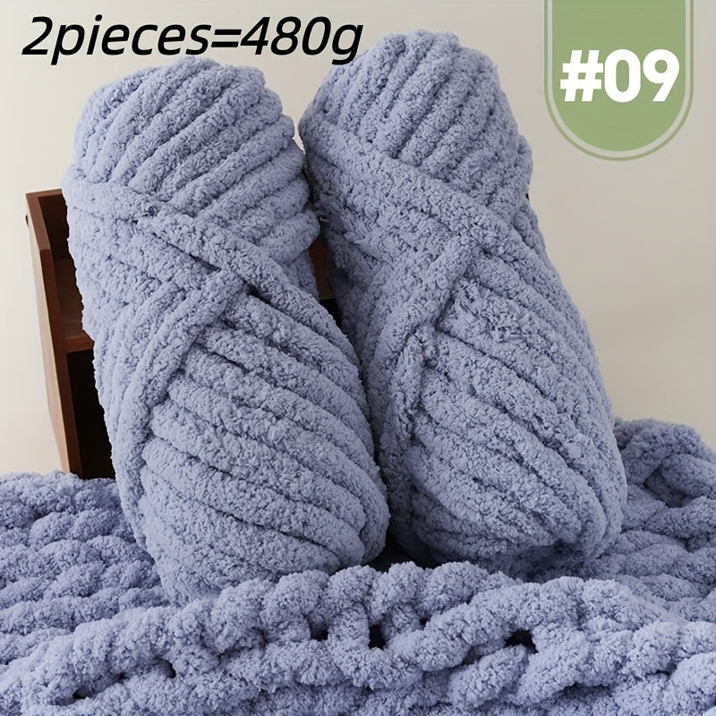 Extra Large Plush Cat Tail Chenille Yarn, Two Skeins per Pack (Total 480g, 16.93oz), for Hand Knitting and Crocheting - Fluffy Soft Giant Bulky yarn. Ideal Thumbneedle Yarn for DIY Blankets, Pet Beds, Rugs, Pillows & Home Dec