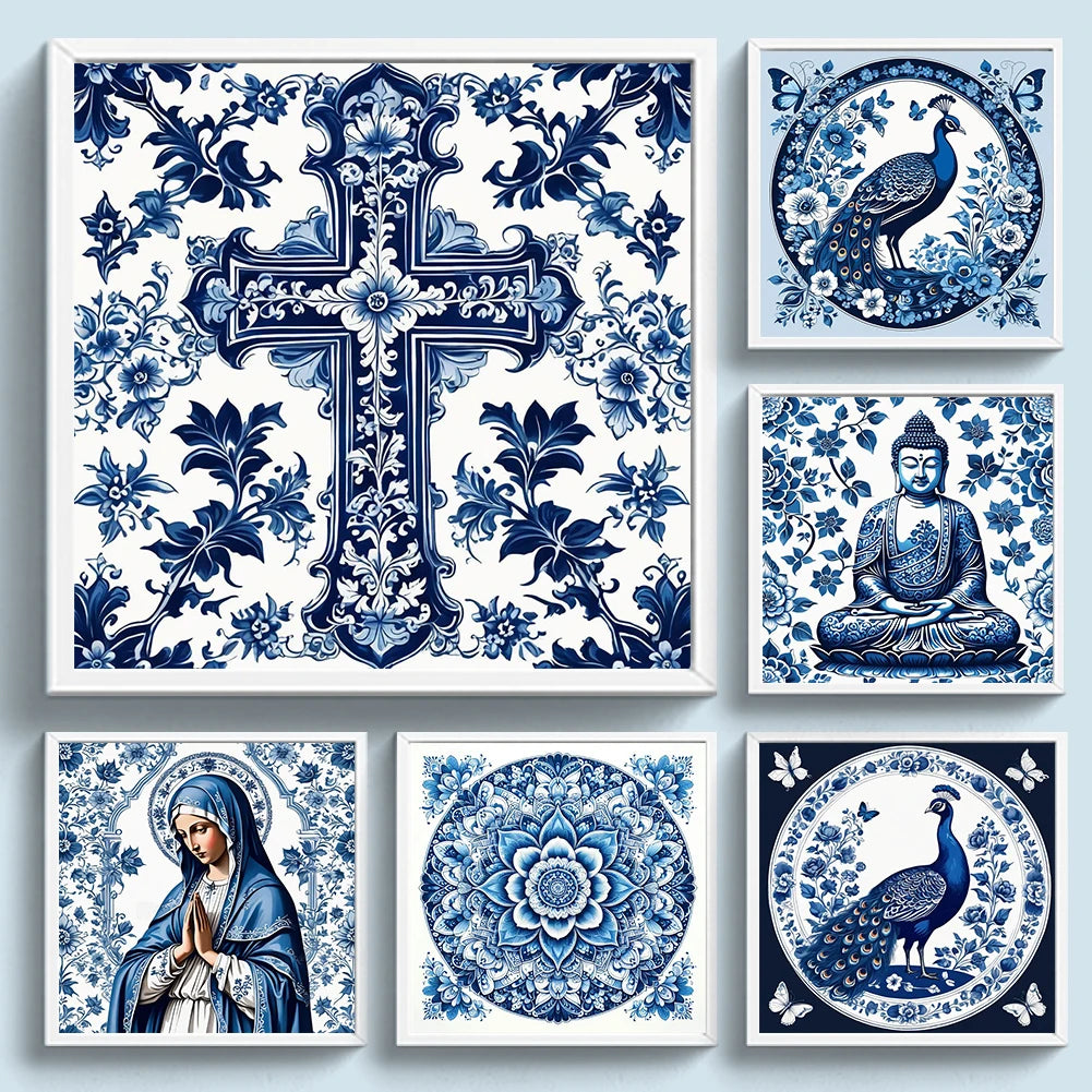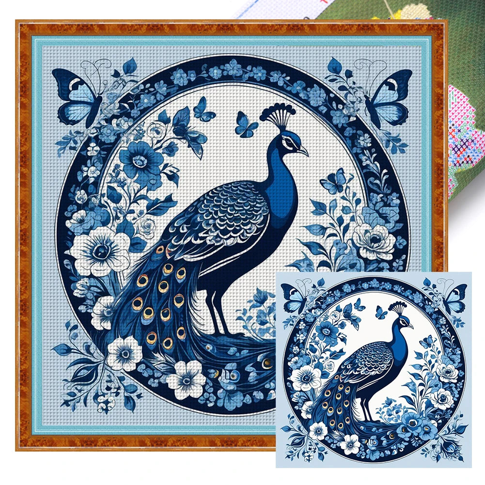 Full Embroidery Eco-cotton Thread 14CT Printed Blue and White Cross Stitch Kit