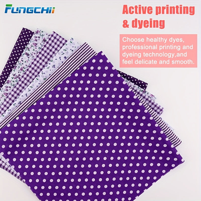 FUNGCHII 6pcs Large Square Fabric Bundle - Pre-Cut Quilting Fabric for Patchwork, Scrapbooking, DIY Crafts - 19.9x19.9 Inch (50x50cm) - Floral, Purple - Ideal for Beginners & Experts - Collection B, Fabric for Quilting, Scrap