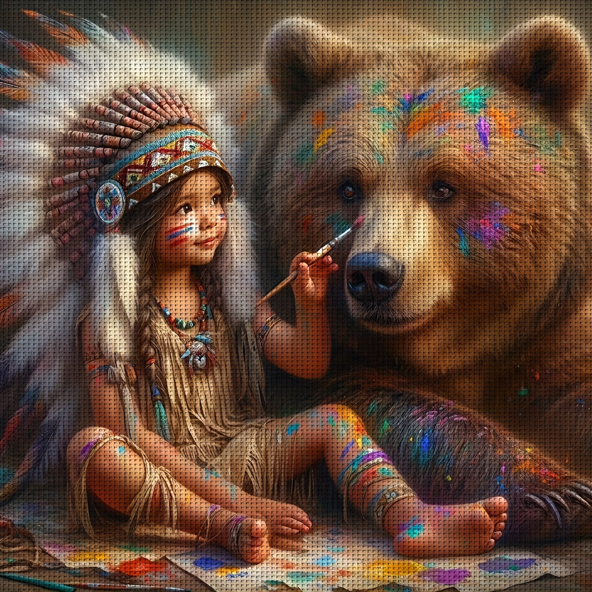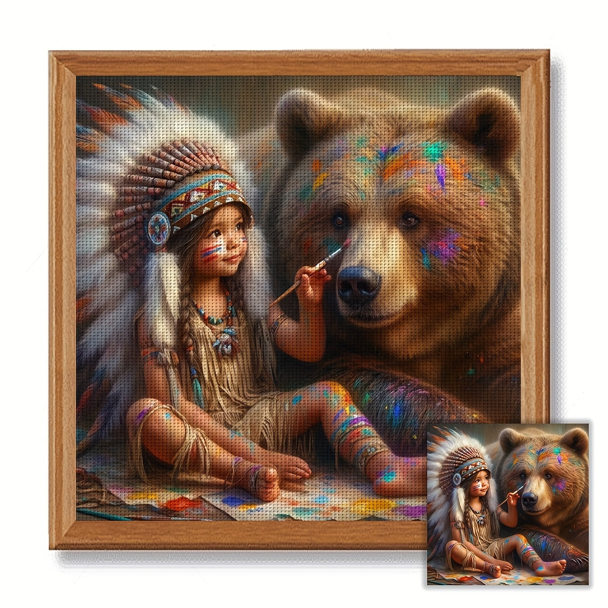 JOZYSH 1pc, 40x40cm/15.7x15.7in Cross Stitch Kit - Girl and Bear Wall Art, DIY Cross Stitch Fabric, Threads, Needles & Instructions for Home Decor, Perfect Holiday Gift, All-Season Home Decoration | Vibrant Wall Art | Detaile